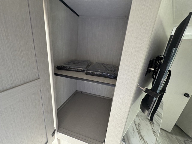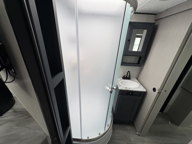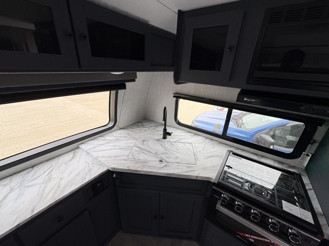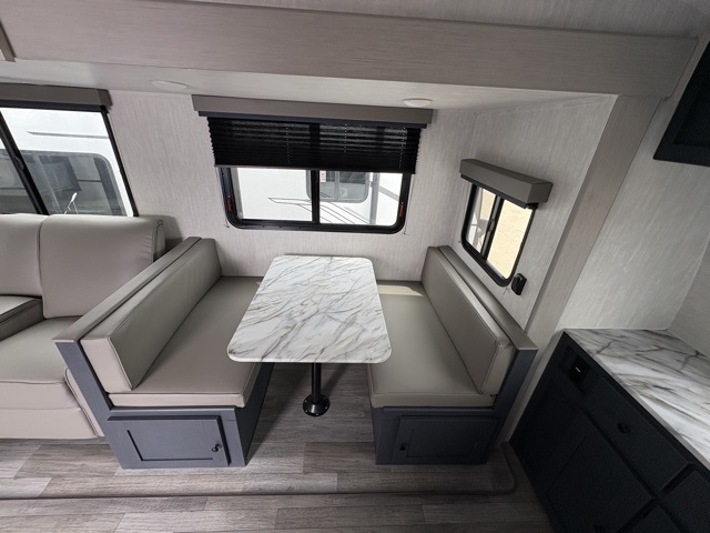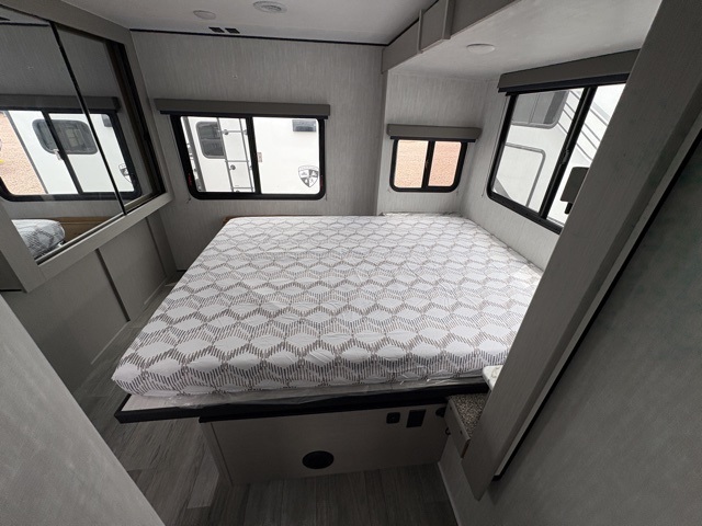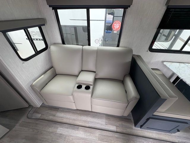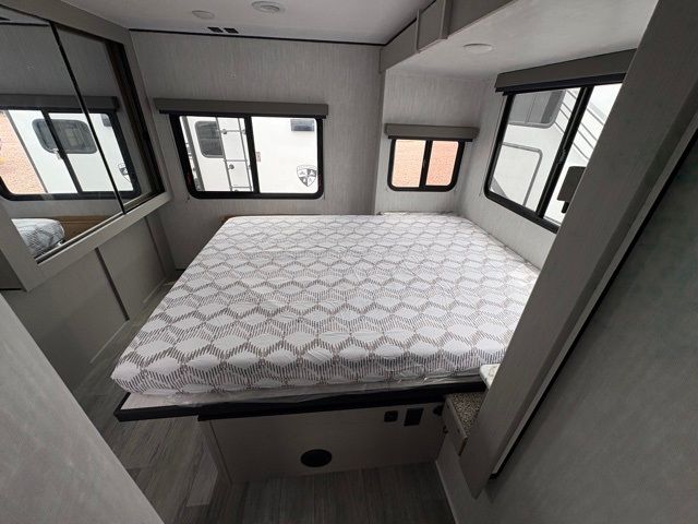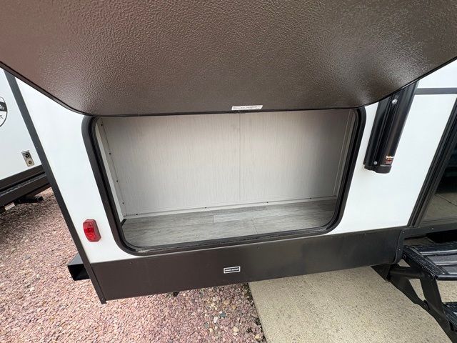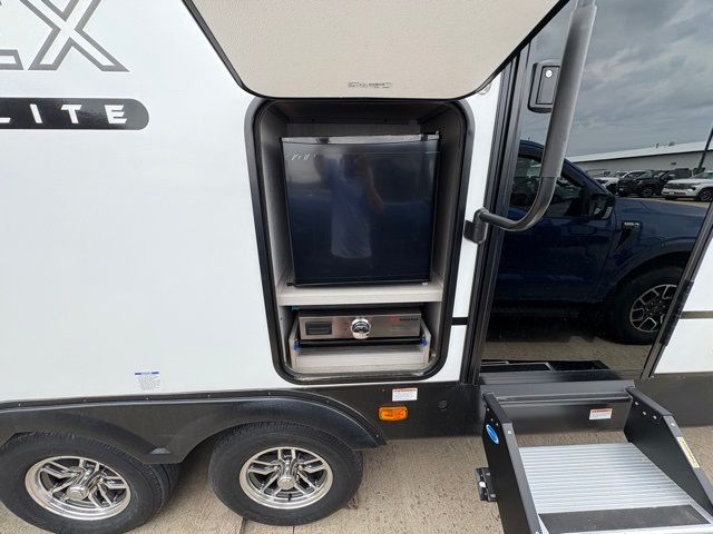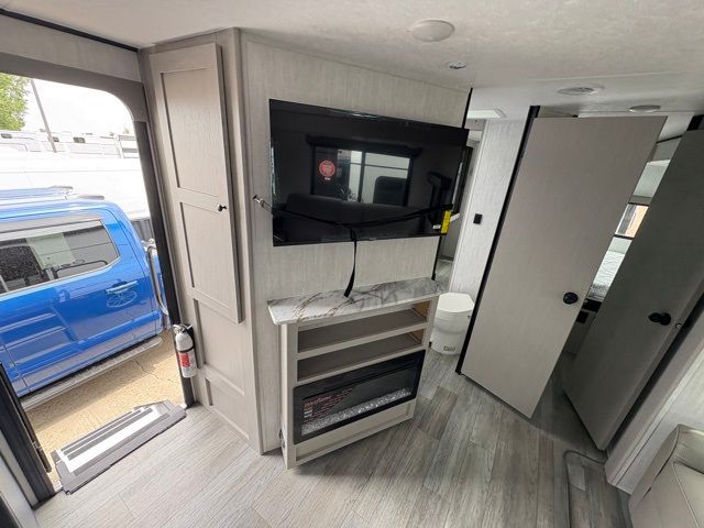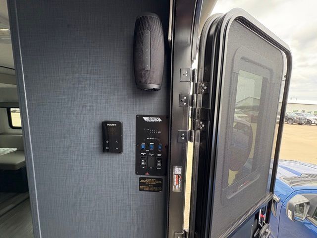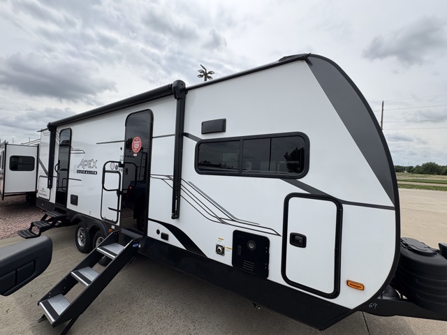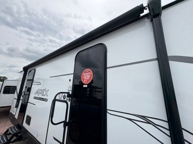 Enjoy each adventure camping in this Apex Ultra-Lite unit featuring dual entry doors. There is sleeping for up to six with the convertible dinette and sofa, plus a queen bed slide in the rear private bedroom that includes super storage beneath. This bedroom also features a large wardrobe near the private bedroom entry door. The front kitchen has everything you need to prepare hearty camp meals easily thanks to the large counter space for prepping. A booth dinette and sofa slide offer seating for everyone and all will easily be able to view the entertainment center with TV and cozy fireplace from either one. A large pantry is conveniently located just inside the main front entry door where you can quickly grab a snack for outside, or load up groceries once you shop for your trip. You will also love the exterior camp kitchen to cook meals outdoors!