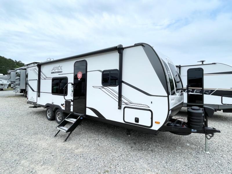 Lightweight living and camping is found with the Apex Ultra-Lite travel trailers by Coachmen. These eco-friendly units are made to last thanks to the Azdel composite sidewalls, the laminated aluminum floor, and the vacuum-bonded laminated crowned roof. Easy lube axles make towing easier than ever, plus there is a friction hinge entrance door, a 200-watt solar panel with a 30 Amp control charger, and slam latch baggage door catches for easy unloading. Some of the interior comforts you'll fall in love with are the one-piece seamless edge countertops, the hard valances with night shades, the matte black hardware, and the Casino Bisque cabinetry. The Apex Ultra-Lite trailers also include a USB charge station, plus a digital TV antenna with cable hook-ups and Wi-Fi capability for the option to stay connected as you camp!