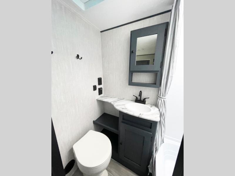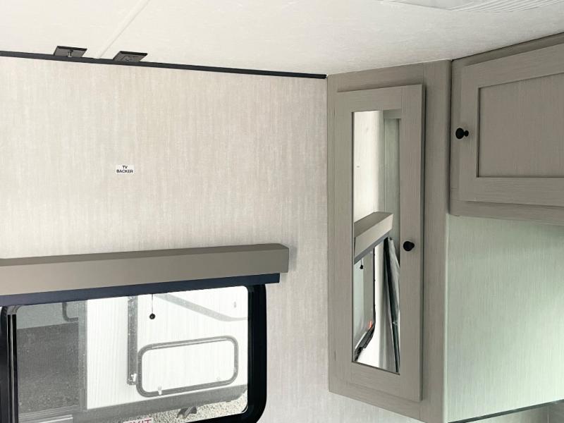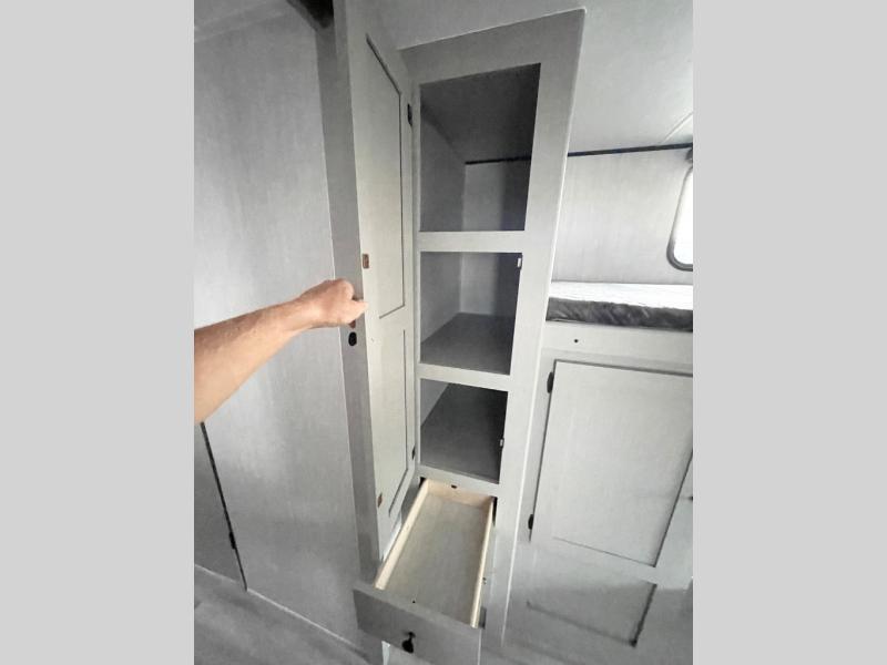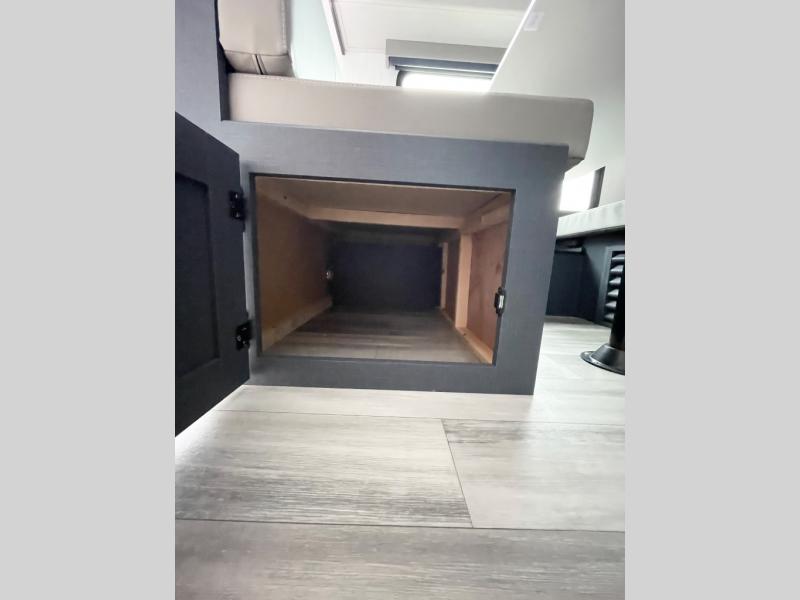 What I liked most: Kitchen counter has a large amount of space. Entertainment Center has lots of storage. Dining booth has one storage cabinet. Kitchen area has plenty of storage. Bunkhouse has plenty of storage with 2 large cabinets, 1 small cabinet and 3 drawers.