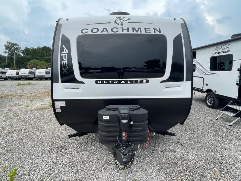 Lightweight living and camping is found with the Apex Ultra-Lite travel trailers by Coachmen. These eco-friendly units are made to last thanks to the Azdel composite sidewalls, the laminated aluminum floor, and the vacuum-bonded laminated crowned roof. Easy lube axles make towing easier than ever, plus there is a friction hinge entrance door, a 200-watt solar panel with a 30 Amp control charger, and slam latch baggage door catches for easy unloading. Some of the interior comforts you'll fall in love with are the one-piece seamless edge countertops, the hard valances with night shades, the matte black hardware, and the Casino Bisque cabinetry. The Apex Ultra-Lite trailers also include a USB charge station, plus a digital TV antenna with cable hook-ups and Wi-Fi capability for the option to stay connected as you camp!