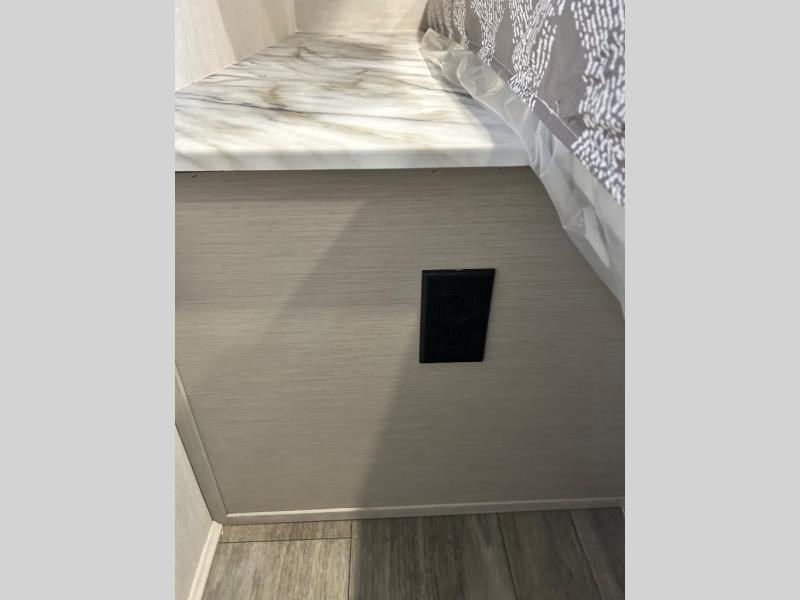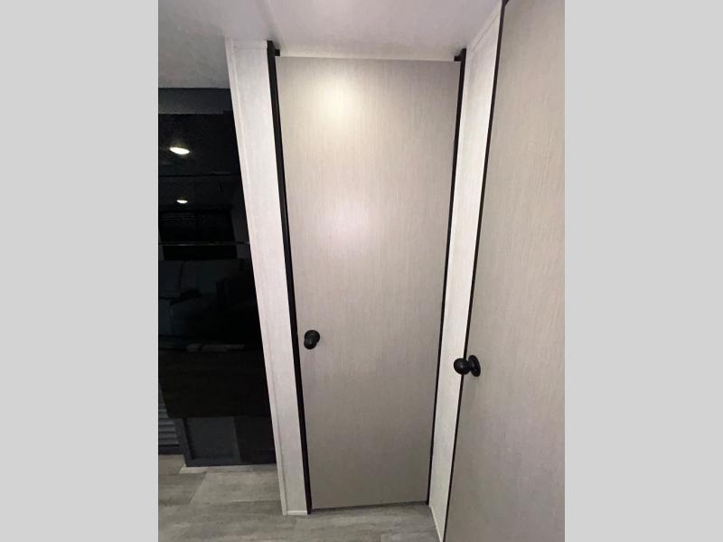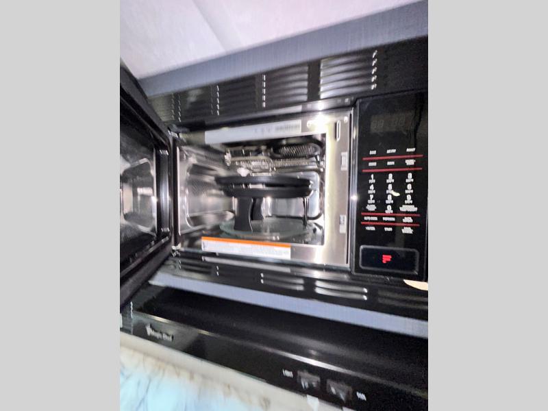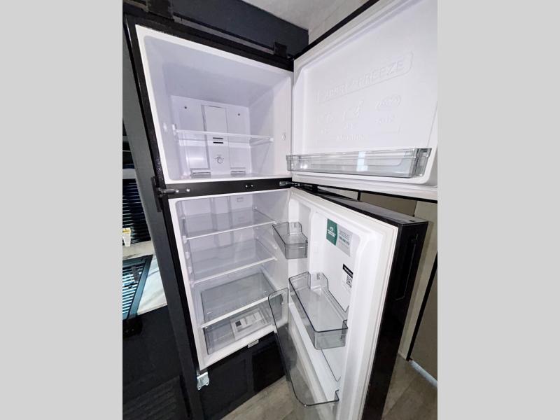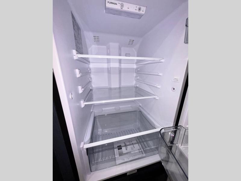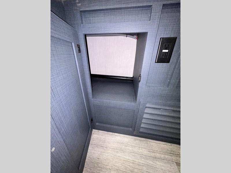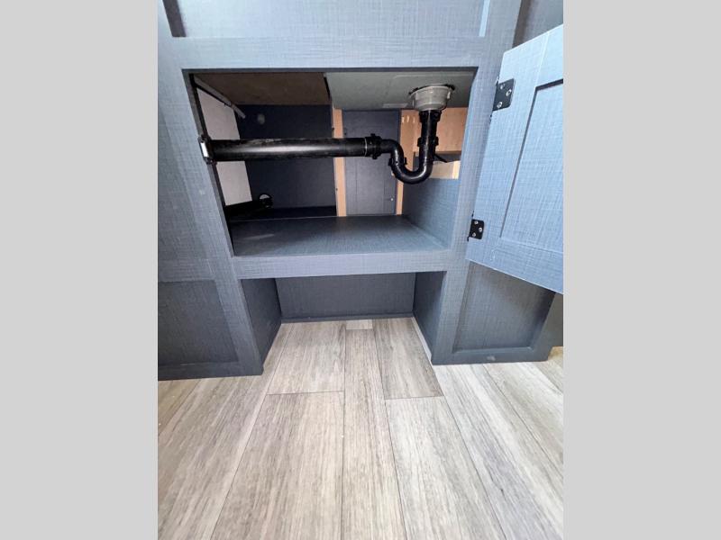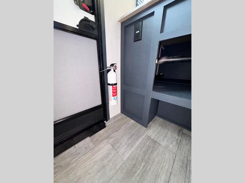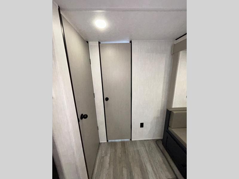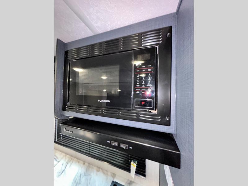 Answer the call of the wild with this travel trailer in tow! You will love having your own bedroom up front that includes a queen bed with storage below plus an overhead cabinet for books and more. A large slide out in the combined kitchen and living area houses the sofa and booth dinette, and these pieces of furniture can double as sleeping space for guests as well. The chef of your group will appreciate the L-shaped kitchen counter with a large sink, a microwave and range plus a refrigerator and pantry for food storage. And the full rear bath will let you freshen up each day. There is a counter with a sink, toilet, and a radius shower/tub!