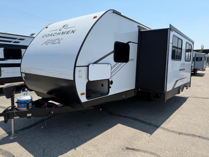 With any Apex X Series travel trailer by Coachmen, you will enjoy camping trips at every turn! They feature higher walls and lower prices compared to the standard Apex line, making them great for first-time RVers! The spacious interior will have you feeling right at home, and the full bath and kitchen amenities make life at the campground hassle-free. There are also plenty of storage space to store your personal belongings, camp gear, food and more! Like with all Coachmen's products, you will find practical innovation, a dependable design, and all the features you're looking for in an RV. Choose an Apex X Series travel trailer today!