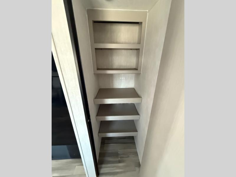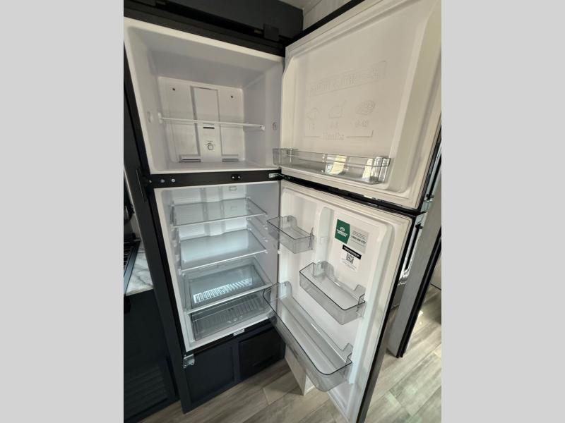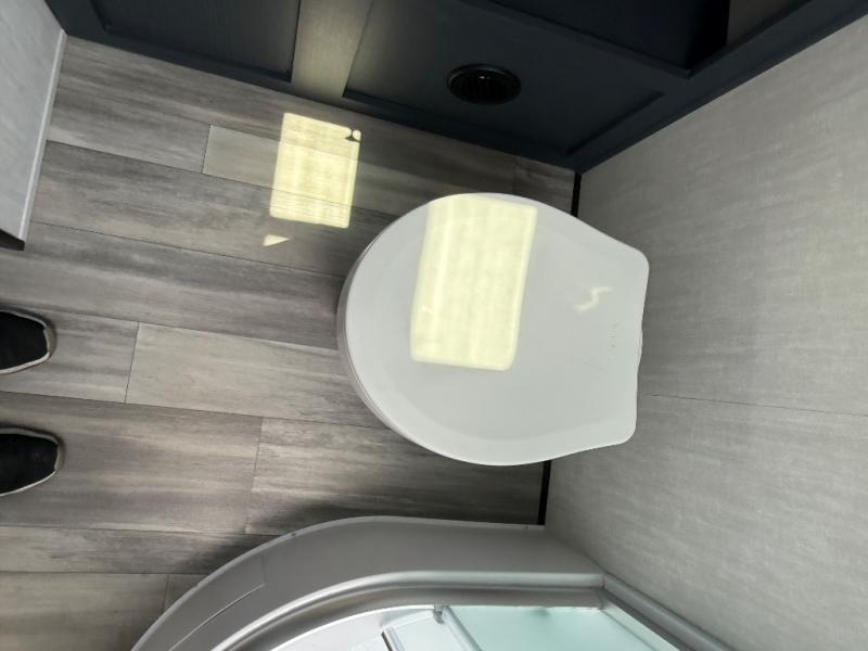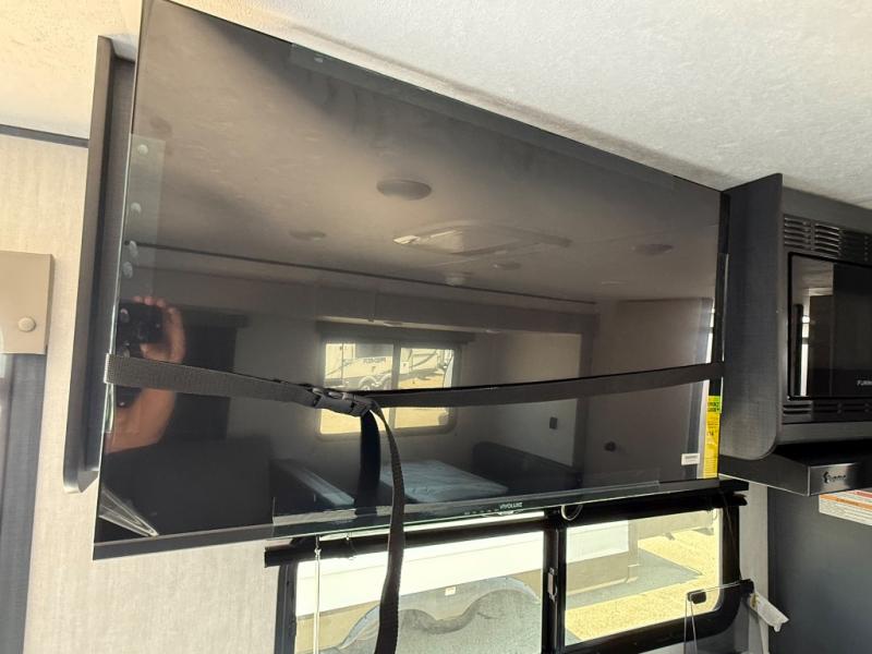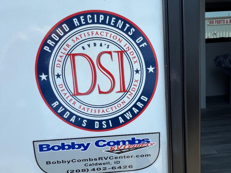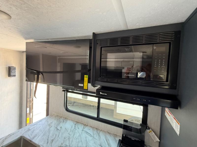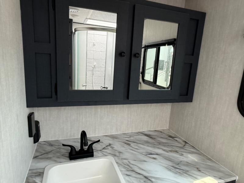 Answer the call of the wild with this travel trailer in tow! You will love having your own bedroom up front that includes a queen bed with storage below plus an overhead cabinet for books and more. A large slide out in the combined kitchen and living area houses the sofa and booth dinette, and these pieces of furniture can double as sleeping space for guests as well. The chef of your group will appreciate the L-shaped kitchen counter with a large sink, a microwave and range plus a refrigerator and pantry for food storage. And the full rear bath will let you freshen up each day. There is a counter with a sink, toilet, and a radius shower/tub!