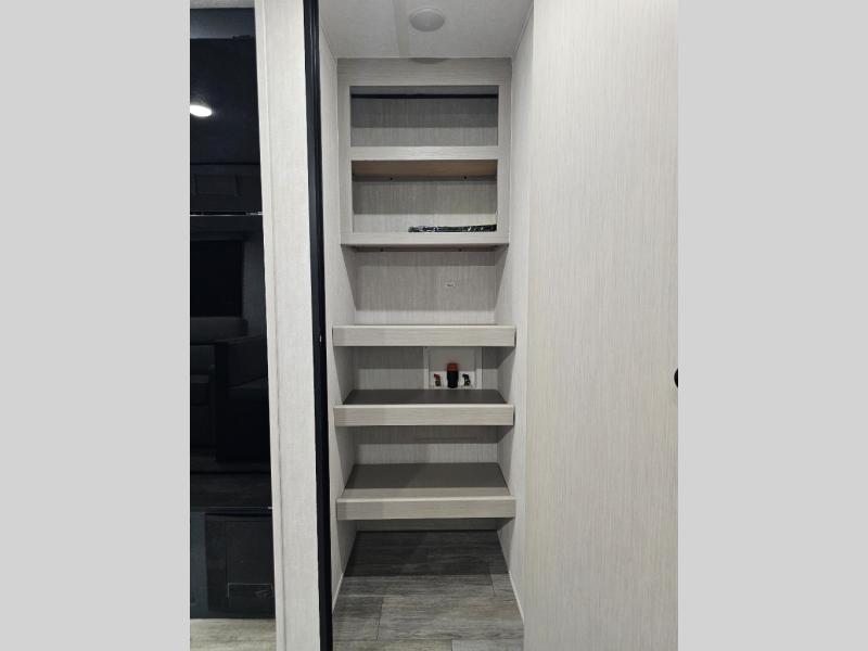 Pantry and 12V Refrigerator provide room for snacks, drinks, and meal ingredients