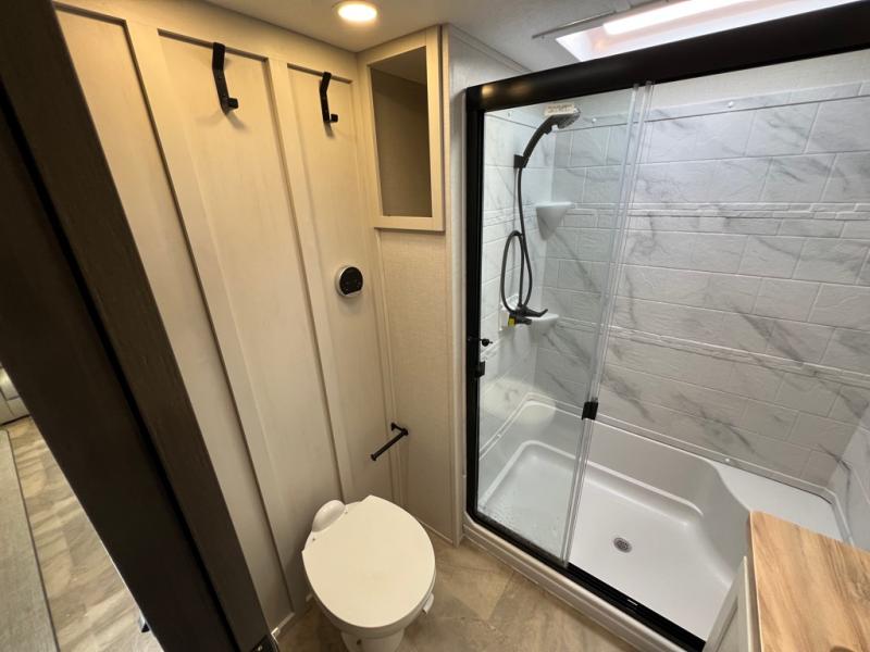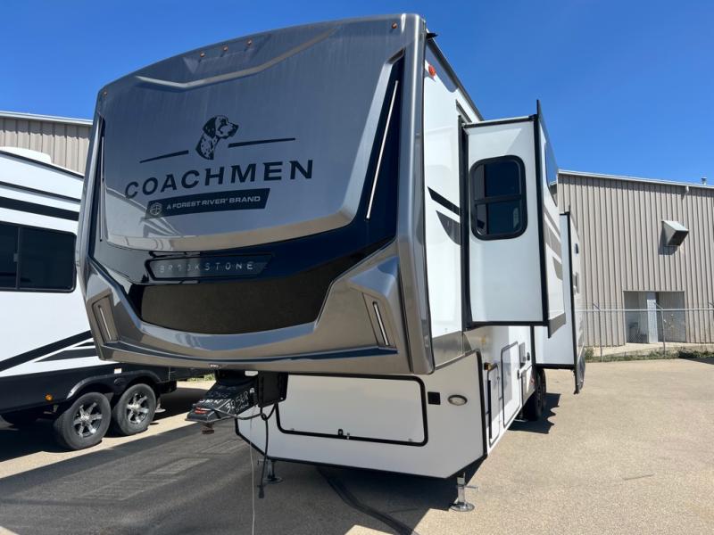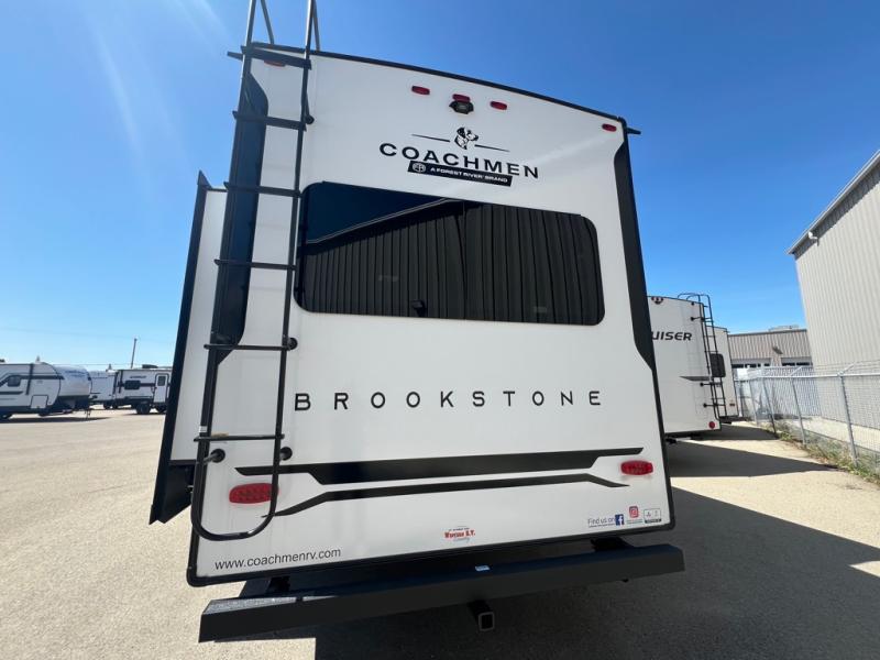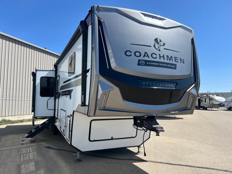 The Brookstone fifth wheels by Coachmen are coming to you with wide-body comfort, home-like amenities, and unique designs for a truly luxurious RV. The Weather Shield+ consists of a 6X double Azdel aluminum cage sidewall system, a Radiant Pro weather barrier system, and more that will help you extend your camping season or go full-time. Head inside to find solid surface countertops in the kitchen, an XL HD LED TV in the living room, slow rise roller night shades, and the list of comforts goes on! The Brookstone also includes 6-point electric auto-leveling, four Solid Step entry steps, an electric awning with LED lights, and many more exterior conveniences!