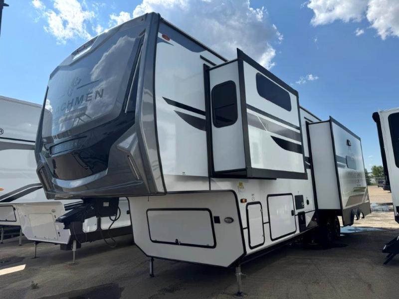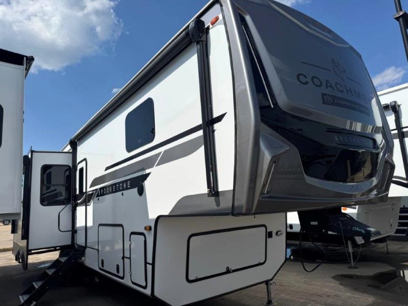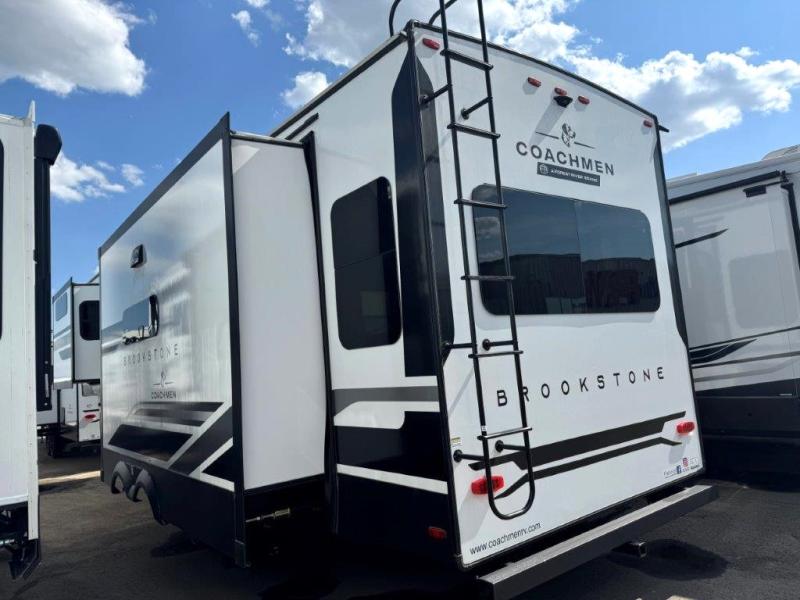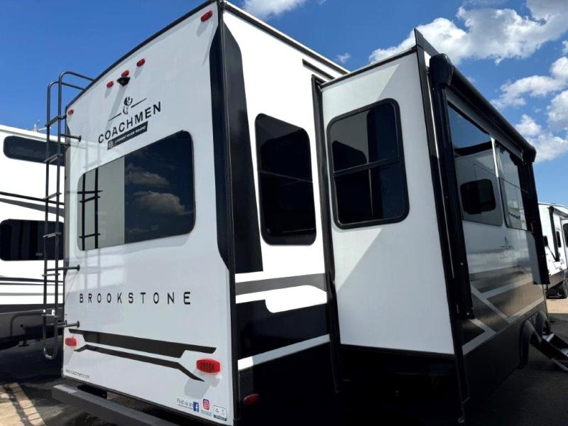 The Brookstone fifth wheels by Coachmen are coming to you with wide-body comfort, home-like amenities, and unique designs for a truly luxurious RV. The Weather Shield+ consists of a 6X double Azdel aluminum cage sidewall system, a Radiant Pro weather barrier system, and more that will help you extend your camping season or go full-time. Head inside to find solid surface countertops in the kitchen, an XL HD LED TV in the living room, slow rise roller night shades, and the list of comforts goes on! The Brookstone also includes 6-point electric auto-leveling, four Solid Step entry steps, an electric awning with LED lights, and many more exterior conveniences!