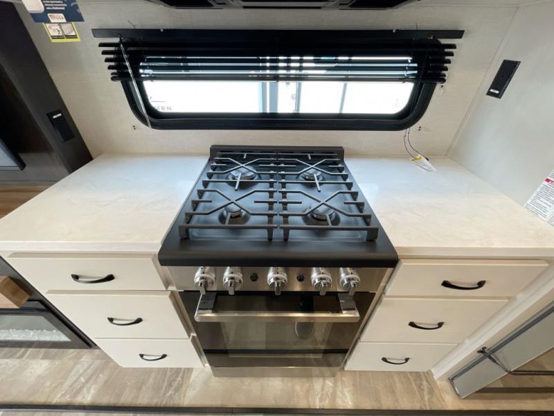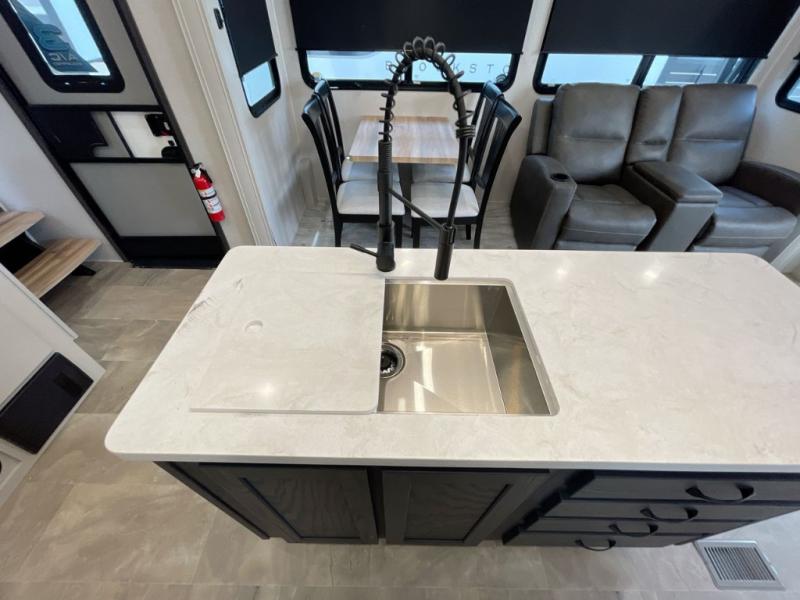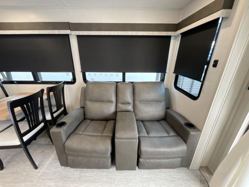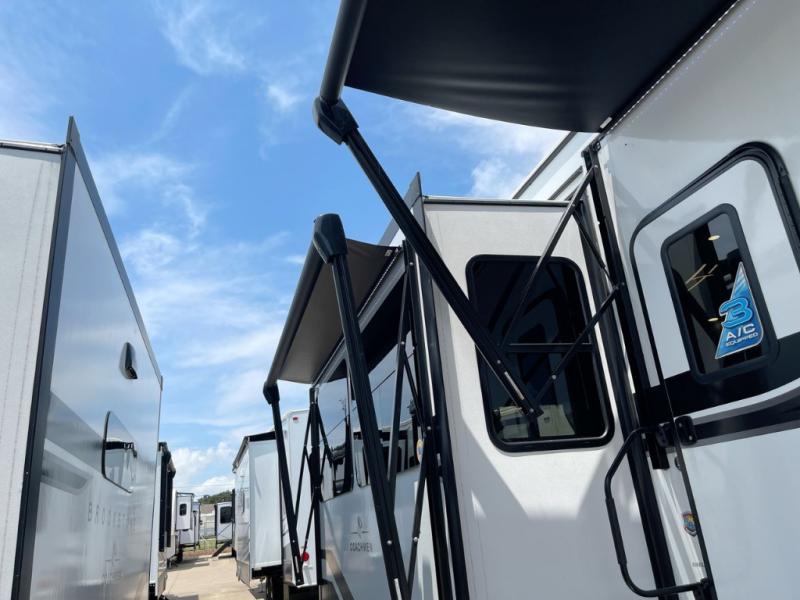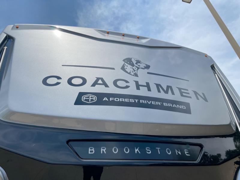 The Brookstone fifth wheels by Coachmen are coming to you with wide-body comfort, home-like amenities, and unique designs for a truly luxurious RV. The Weather Shield+ consists of a 6X double Azdel aluminum cage sidewall system, a Radiant Pro weather barrier system, and more that will help you extend your camping season or go full-time. Head inside to find solid surface countertops in the kitchen, an 4K Smart LED TV in the living room, slow rise roller night shades, and the list of comforts goes on! The Brookstone also includes 6-point electric auto-leveling, four Solid Step entry steps, an electric awning with LED lights, and many more exterior conveniences!