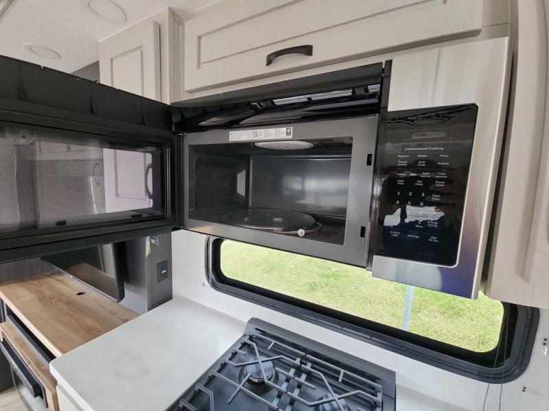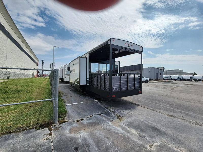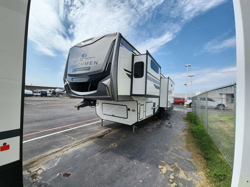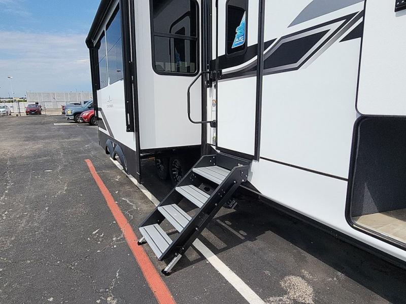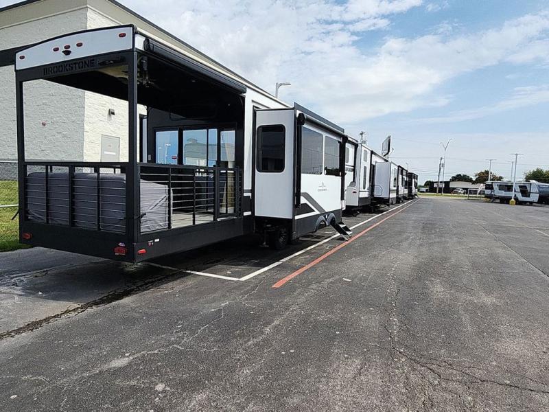 The Brookstone fifth wheels by Coachmen are coming to you with wide-body comfort, home-like amenities, and unique designs for a truly luxurious RV. The Weather Shield+ consists of a 6X double Azdel aluminum cage sidewall system, a Radiant Pro weather barrier system, and more that will help you extend your camping season or go full-time. Head inside to find solid surface countertops in the kitchen, an 4K Smart LED TV in the living room, slow rise roller night shades, and the list of comforts goes on! The Brookstone also includes 6-point electric auto-leveling, four Solid Step entry steps, an electric awning with LED lights, and many more exterior conveniences!