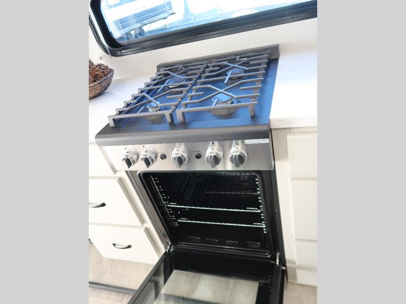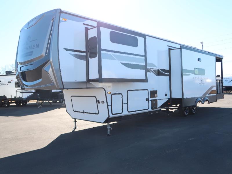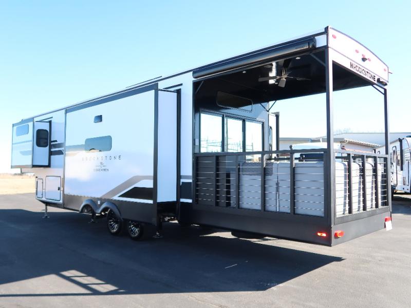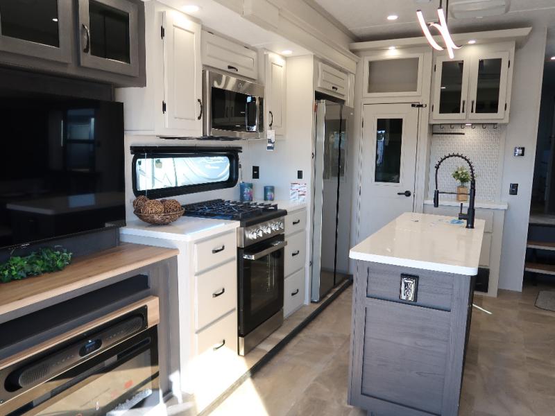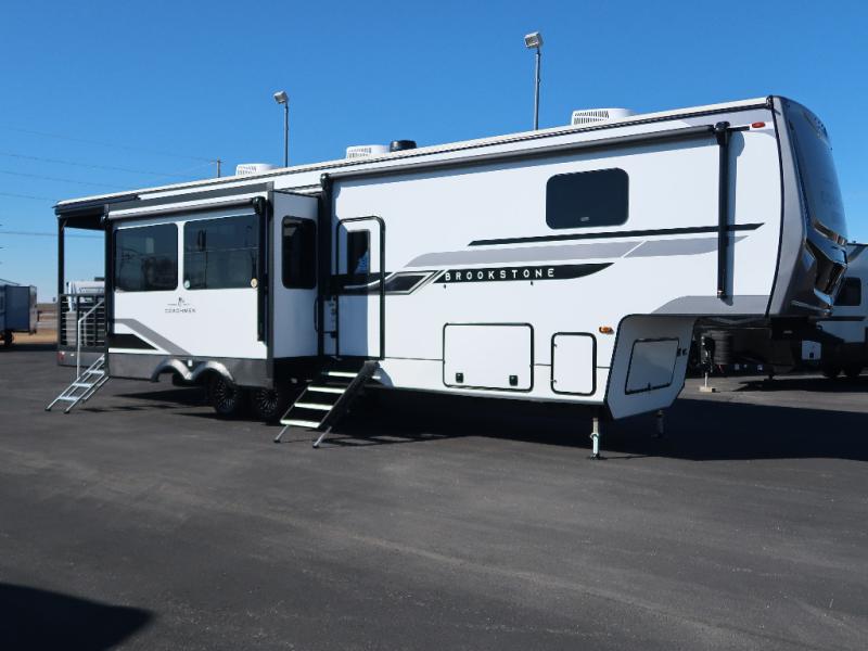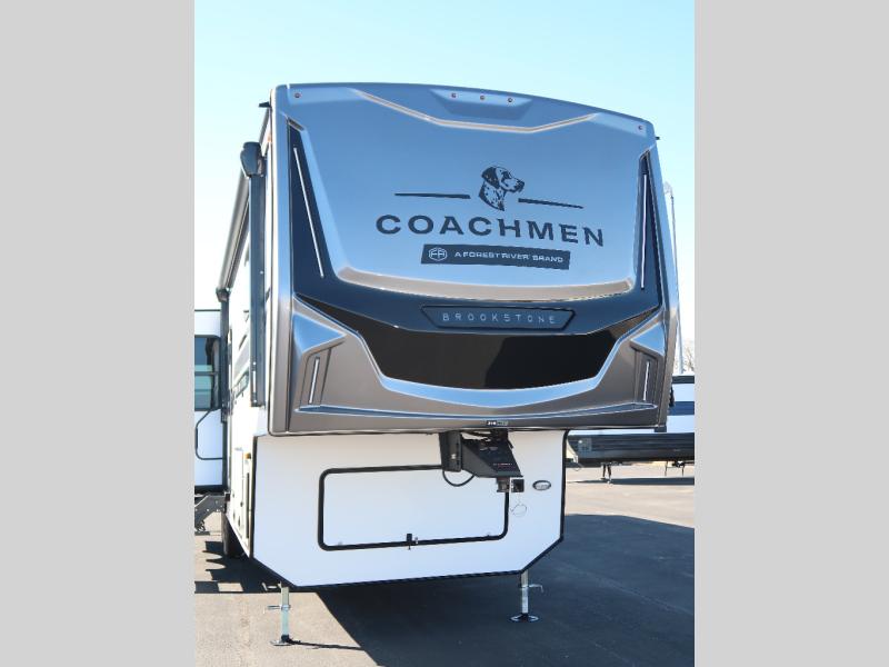 The Brookstone fifth wheels by Coachmen are coming to you with wide-body comfort, home-like amenities, and unique designs for a truly luxurious RV. The Weather Shield+ consists of a 6X double Azdel aluminum cage sidewall system, a Radiant Pro weather barrier system, and more that will help you extend your camping season or go full-time. Head inside to find solid surface countertops in the kitchen, an 4K Smart LED TV in the living room, slow rise roller night shades, and the list of comforts goes on! The Brookstone also includes 6-point electric auto-leveling, four Solid Step entry steps, an electric awning with LED lights, and many more exterior conveniences!