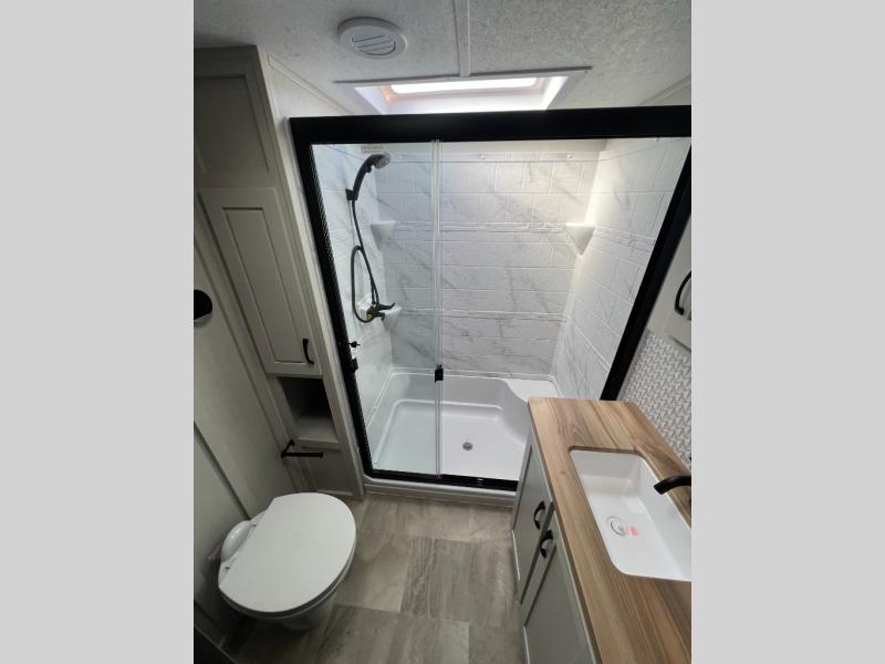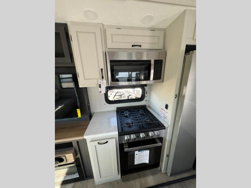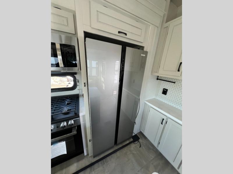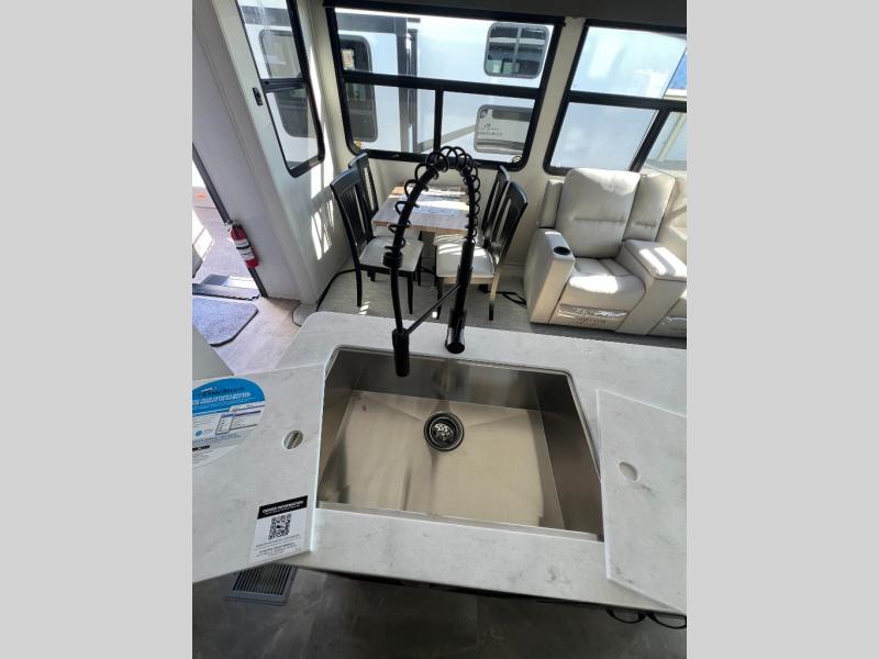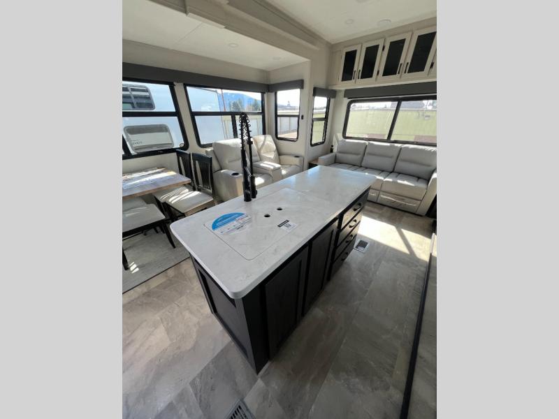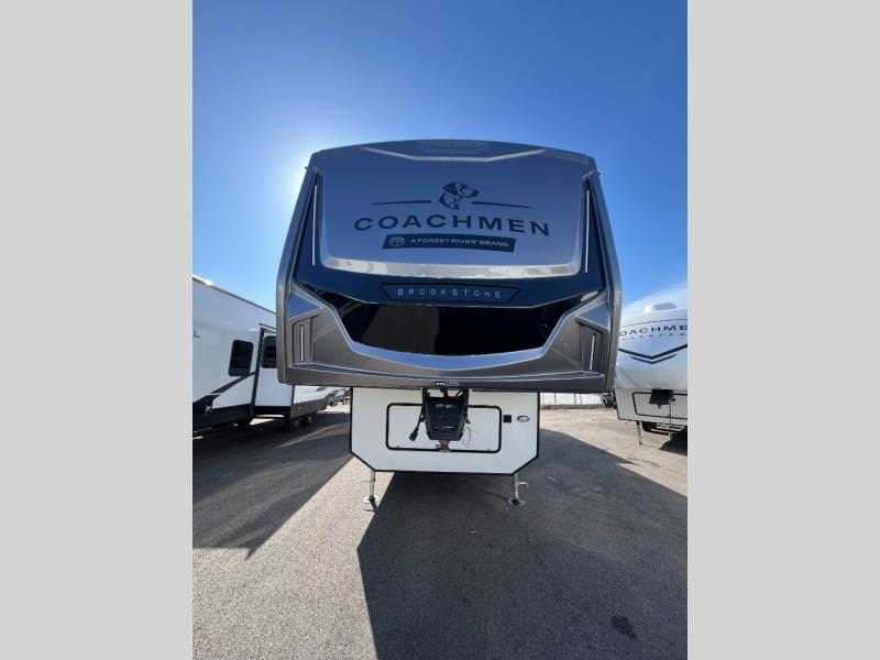 The Brookstone fifth wheels by Coachmen are coming to you with wide-body comfort, home-like amenities, and unique designs for a truly luxurious RV. The Weather Shield+ consists of a 6X double Azdel aluminum cage sidewall system, a Radiant Pro weather barrier system, and more that will help you extend your camping season or go full-time. Head inside to find solid surface countertops in the kitchen, an 4K Smart LED TV in the living room, slow rise roller night shades, and the list of comforts goes on! The Brookstone also includes 6-point electric auto-leveling, four Solid Step entry steps, an electric awning with LED lights, and many more exterior conveniences!