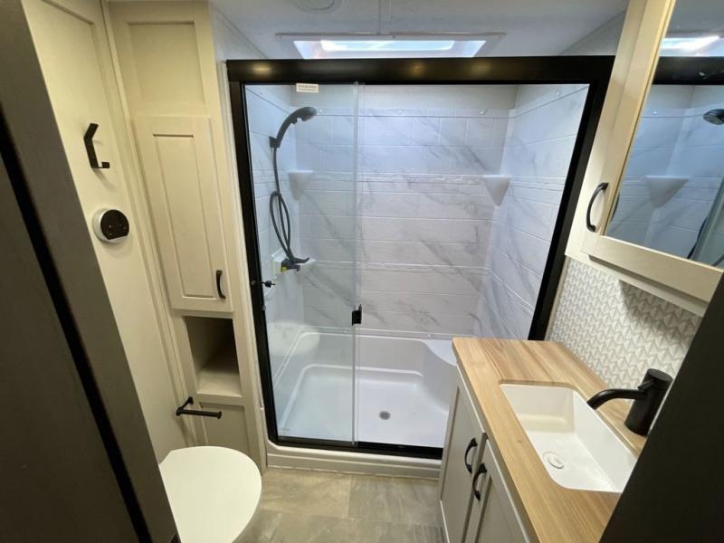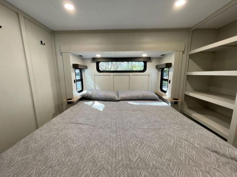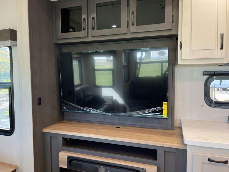 The Brookstone fifth wheels by Coachmen are coming to you with wide-body comfort, home-like amenities, and unique designs for a truly luxurious RV. The Weather Shield+ consists of a 6X double Azdel aluminum cage sidewall system, a Radiant Pro weather barrier system, and more that will help you extend your camping season or go full-time. Head inside to find solid surface countertops in the kitchen, an 4K Smart LED TV in the living room, slow rise roller night shades, and the list of comforts goes on! The Brookstone also includes 6-point electric auto-leveling, four Solid Step entry steps, an electric awning with LED lights, and many more exterior conveniences!