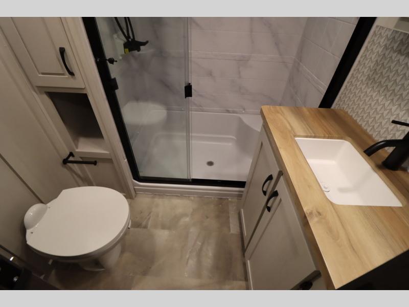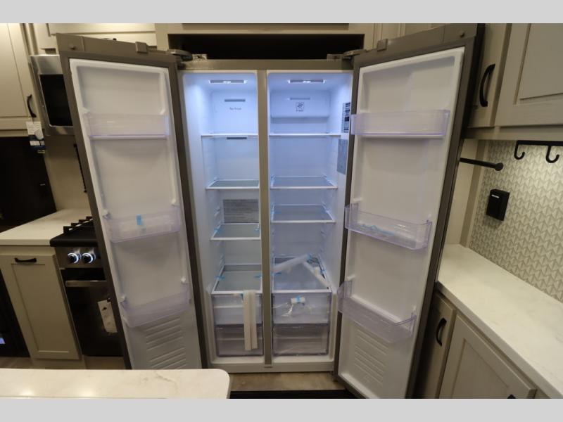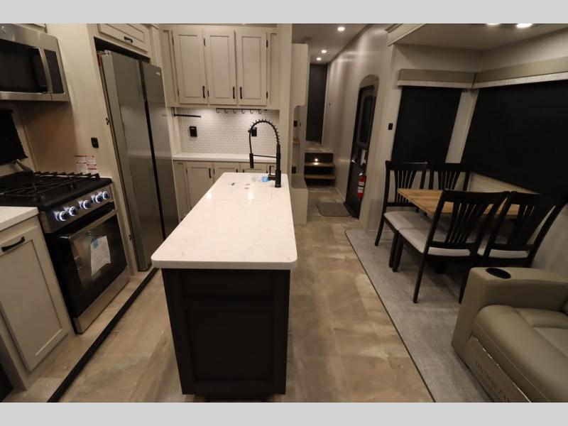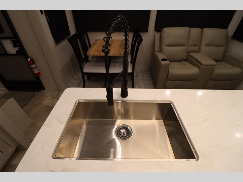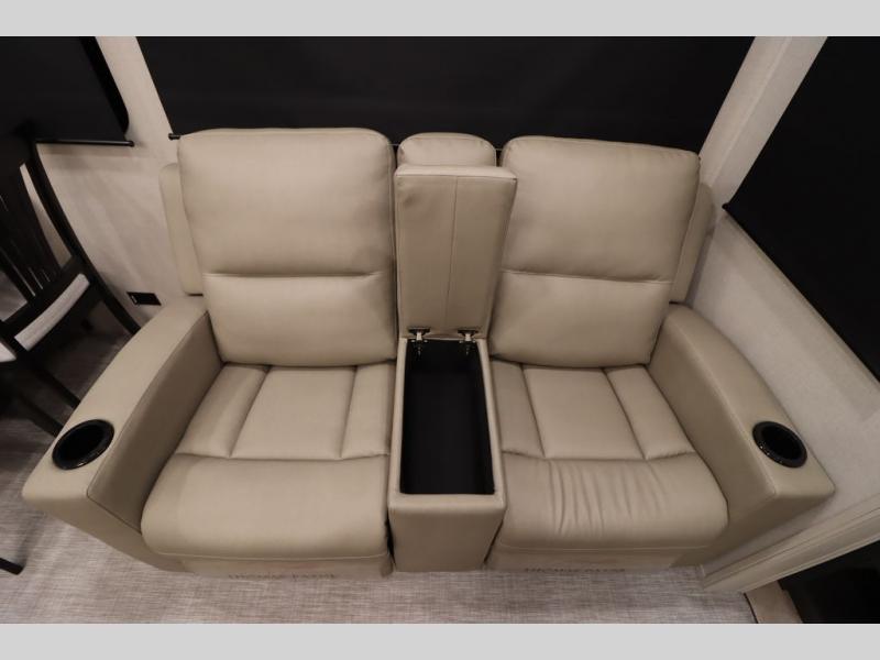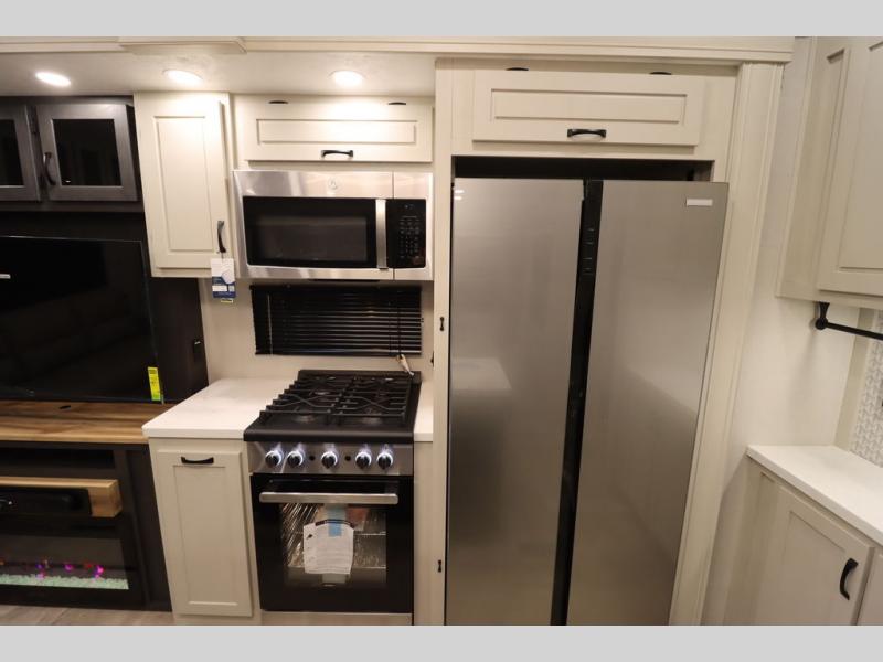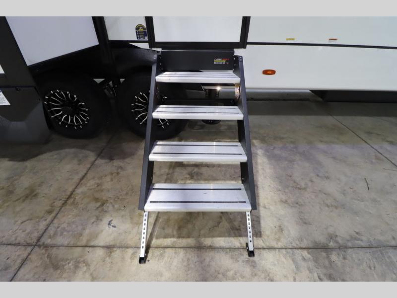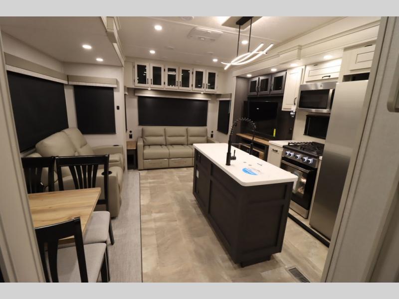 The Brookstone fifth wheels by Coachmen are coming to you with wide-body comfort, home-like amenities, and unique designs for a truly luxurious RV. The Weather Shield+ consists of a 6X double Azdel aluminum cage sidewall system, a Radiant Pro weather barrier system, and more that will help you extend your camping season or go full-time. Head inside to find solid surface countertops in the kitchen, an 4K Smart LED TV in the living room, slow rise roller night shades, and the list of comforts goes on! The Brookstone also includes 6-point electric auto-leveling, four Solid Step entry steps, an electric awning with LED lights, and many more exterior conveniences!