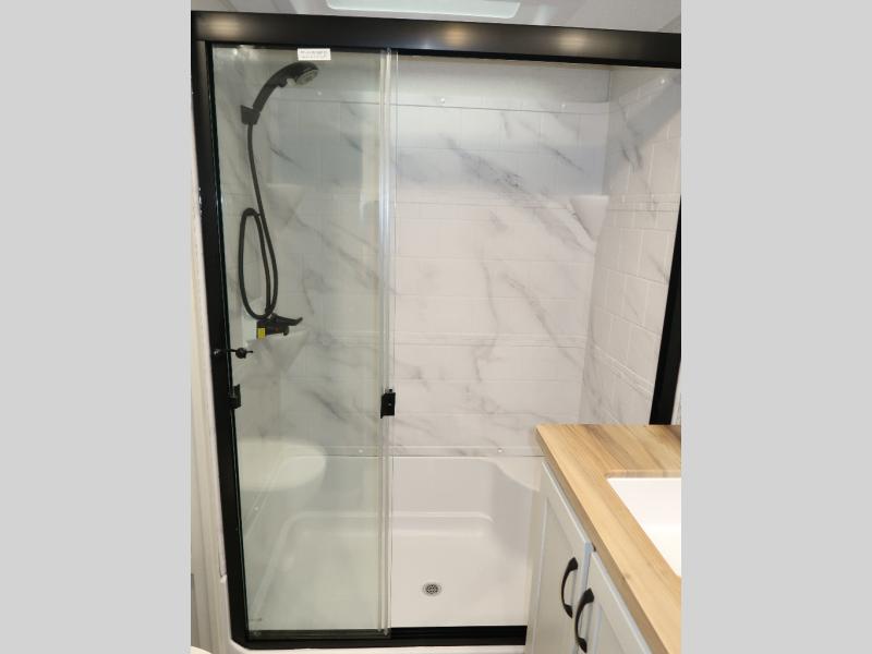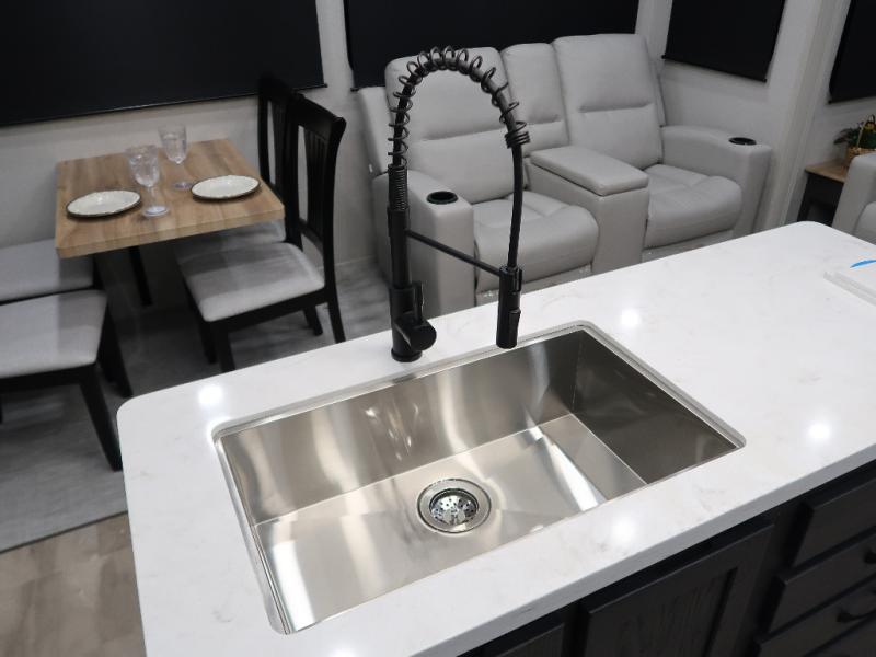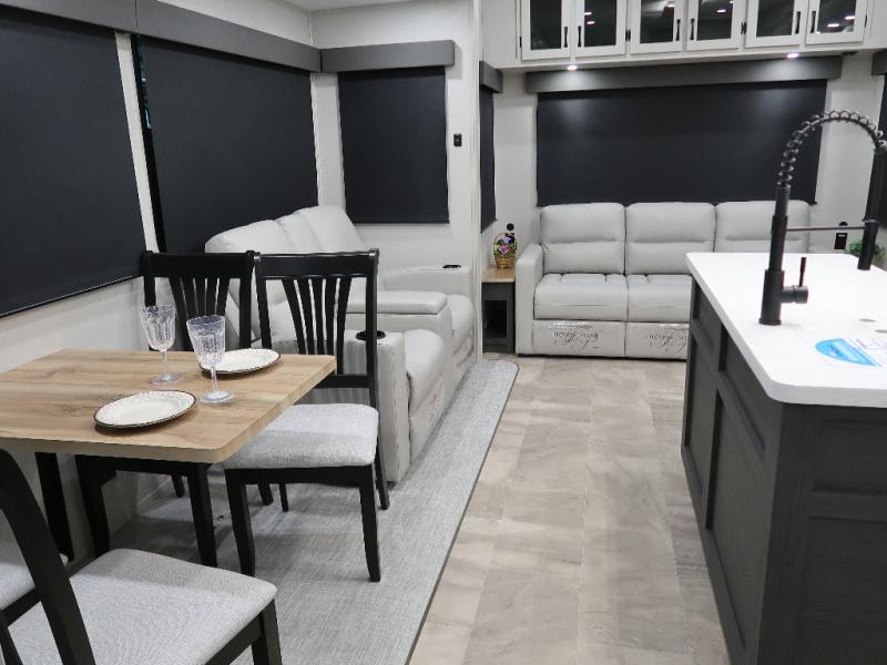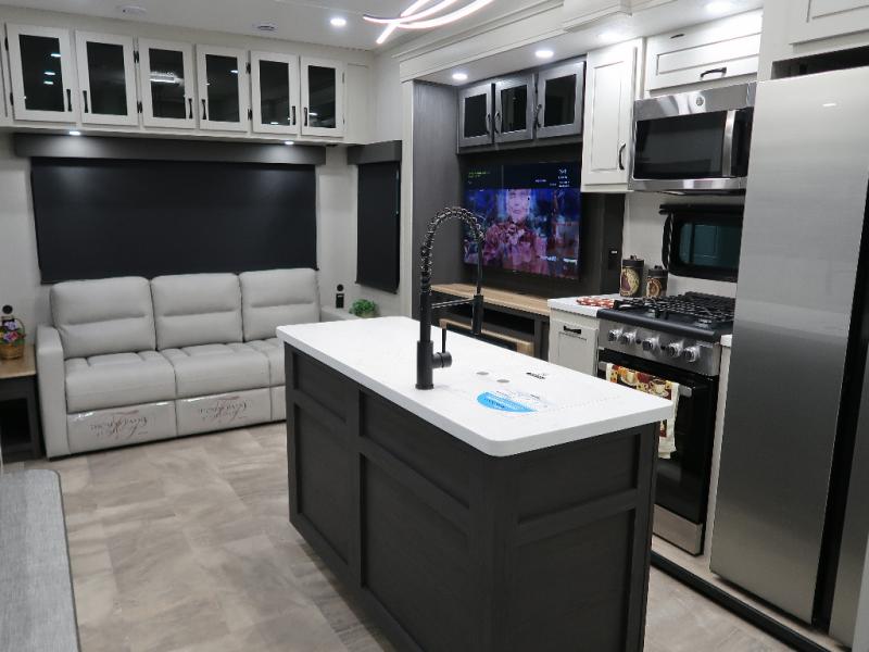 The Brookstone fifth wheels by Coachmen are coming to you with wide-body comfort, home-like amenities, and unique designs for a truly luxurious RV. The Weather Shield+ consists of a 6X double Azdel aluminum cage sidewall system, a Radiant Pro weather barrier system, and more that will help you extend your camping season or go full-time. Head inside to find solid surface countertops in the kitchen, an 4K Smart LED TV in the living room, slow rise roller night shades, and the list of comforts goes on! The Brookstone also includes 6-point electric auto-leveling, four Solid Step entry steps, an electric awning with LED lights, and many more exterior conveniences!