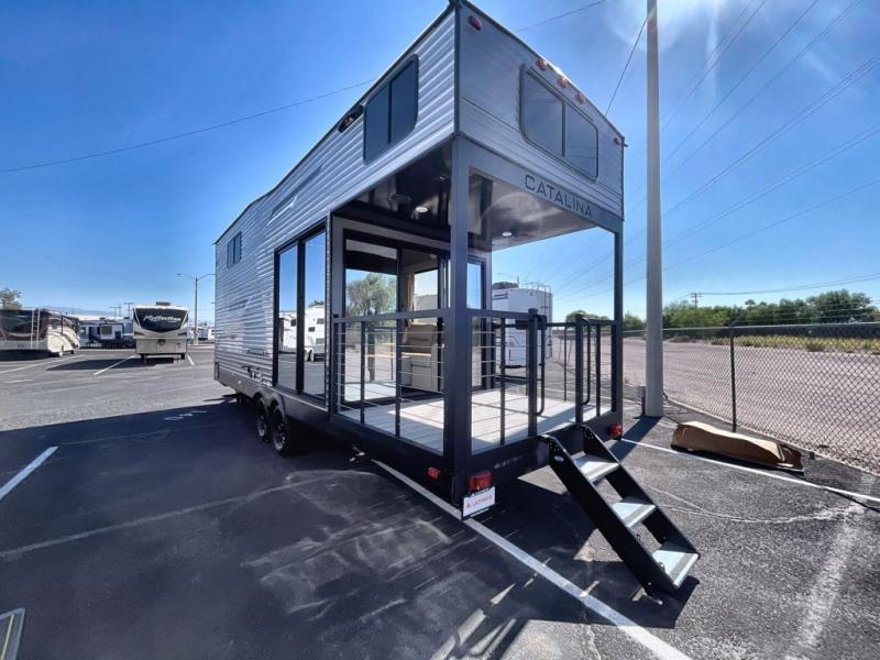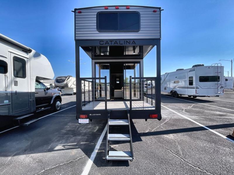 With any Catalina Destination trailer by Coachmen, you will enjoy comfortable extended stays wherever you decide to set up camp! The full length frame outriggers add strength to each unit, along with a seamless Alpha Roof membrane and Norco electromagnetic, powder coated chassis. You will love the open views provided by the large front bay windows, plus there are GE appliances, woodplank linoleum flooring, and hard valance window treatments to make your space feel more like home. Head outside to find a convenient "Leash Link" quick hookup D-ring for your furry friends, premium JBL exterior speakers, flush mount baggage doors for your gear, and the list of amenities goes on!