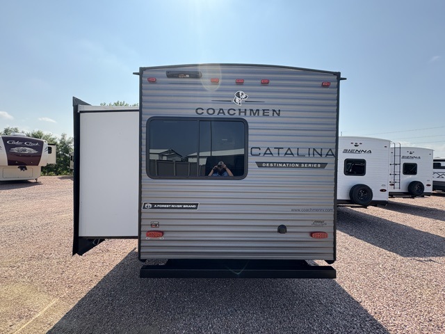 With any Catalina Destination trailer by Coachmen, you will enjoy comfortable extended stays wherever you decide to set up camp! The full length frame outriggers add strength to each unit, along with a seamless Alpha Roof membrane and Norco electromagnetic, powder coated chassis. You will love the open views provided by the large front bay windows, plus there are GE appliances, woodplank linoleum flooring, and hard valance window treatments to make your space feel more like home. Head outside to find a convenient "Leash Link" quick hookup D-ring for your furry friends, premium JBL exterior speakers, flush mount baggage doors for your gear, and the list of amenities goes on!
