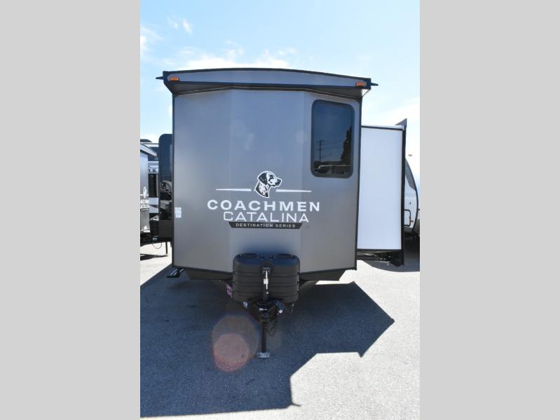With any Catalina Destination trailer by Coachmen, you will enjoy comfortable extended stays wherever you decide to set up camp! The full length frame outriggers add strength to each unit, along with a seamless Alpha Roof membrane and Norco electromagnetic, powder coated chassis. You will love the open views provided by the large front bay windows, plus there are GE appliances, woodplank linoleum flooring, and hard valance window treatments to make your space feel more like home. Head outside to find a convenient "Leash Link" quick hookup D-ring for your furry friends, premium JBL exterior speakers, flush mount baggage doors for your gear, and the list of amenities goes on!