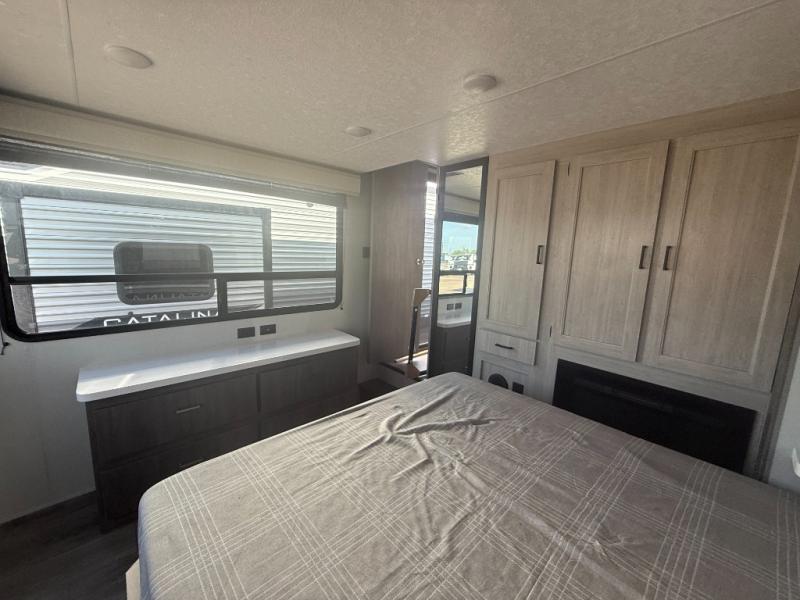 With any Catalina Destination trailer by Coachmen, you will enjoy comfortable extended stays wherever you decide to set up camp! The full length frame outriggers add strength to each unit, along with a seamless Alpha Roof membrane and Norco electromagnetic, powder coated chassis. You will love the open views provided by the large front bay windows, plus there are GE appliances, woodplank linoleum flooring, and hard valance window treatments to make your space feel more like home. Head outside to find a convenient "Leash Link" quick hookup D-ring for your furry friends, premium JBL exterior speakers, flush mount baggage doors for your gear, and the list of amenities goes on!