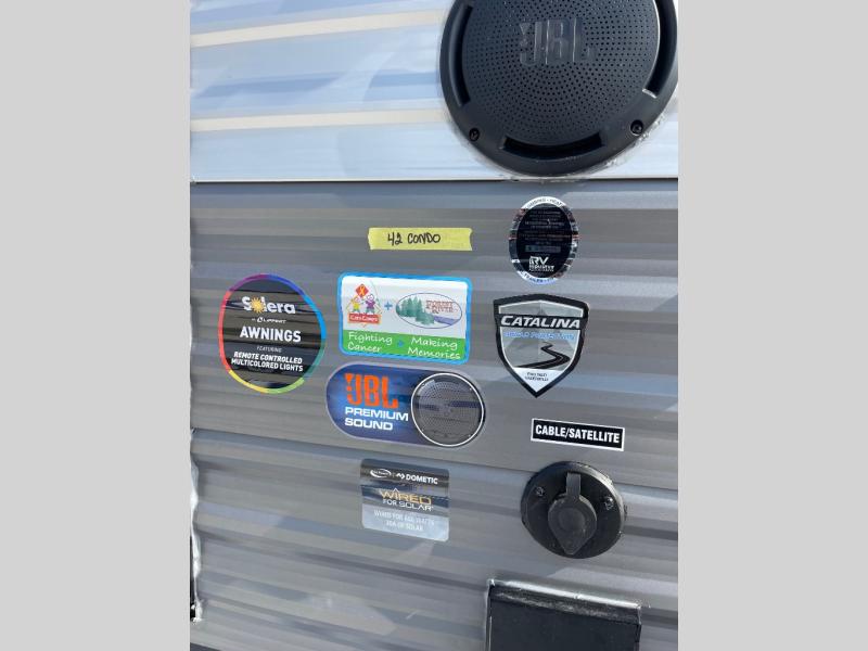 With any Catalina Destination trailer by Coachmen, you will enjoy comfortable extended stays wherever you decide to set up camp! The full length frame outriggers add strength to each unit, along with a seamless Alpha Roof membrane and Norco electromagnetic, powder coated chassis. You will love the open views provided by the large front bay windows, plus there are GE appliances, woodplank linoleum flooring, and hard valance window treatments to make your space feel more like home. Head outside to find a convenient "Leash Link" quick hookup D-ring for your furry friends, premium JBL exterior speakers, flush mount baggage doors for your gear, and the list of amenities goes on!