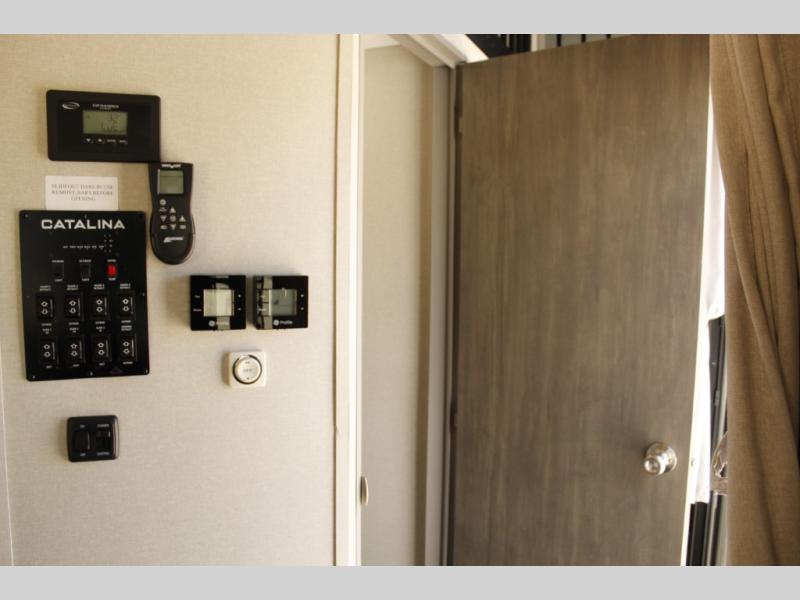 With any Catalina Destination trailer by Coachmen, you will enjoy comfortable extended stays wherever you decide to set up camp! The full length frame outriggers add strength to each unit, along with a seamless Alpha Roof membrane and Norco electromagnetic, powder coated chassis. You will love the open views provided by the large front bay windows, plus there are GE appliances, woodplank linoleum flooring, and hard valance window treatments to make your space feel more like home. Head outside to find a convenient "Leash Link" quick hookup D-ring for your furry friends, premium JBL exterior speakers, flush mount baggage doors for your gear, and the list of amenities goes on!