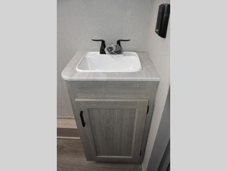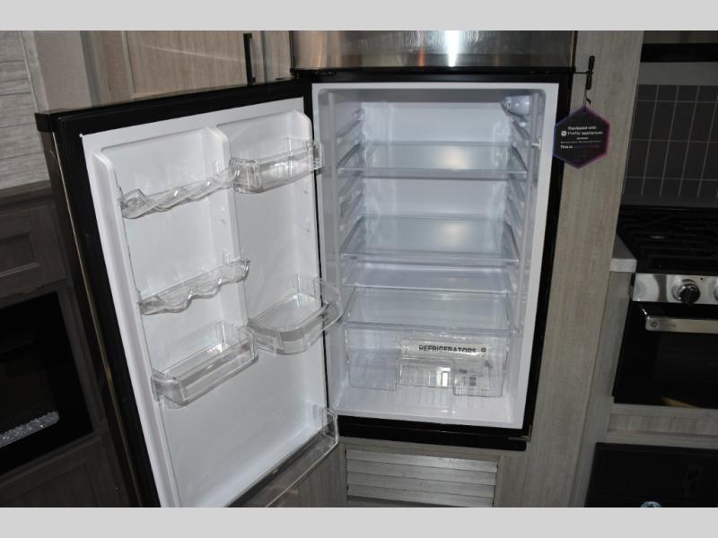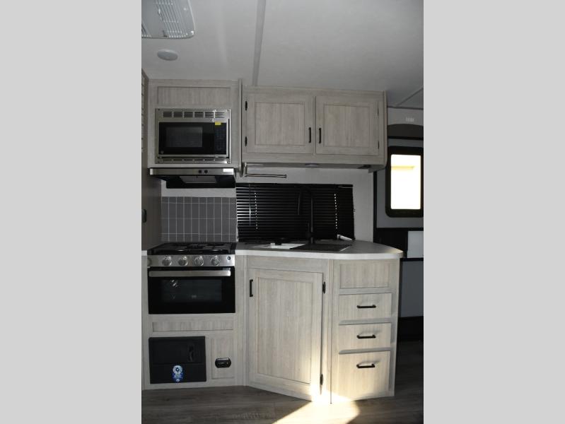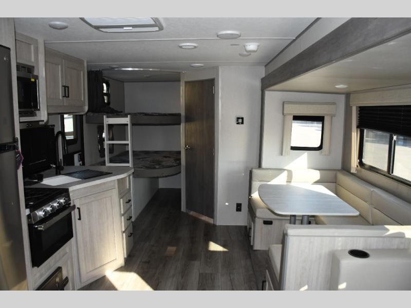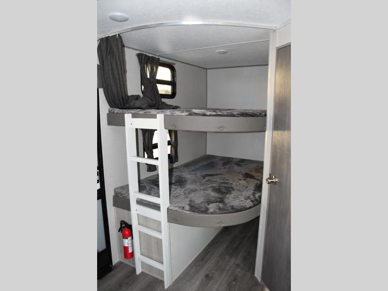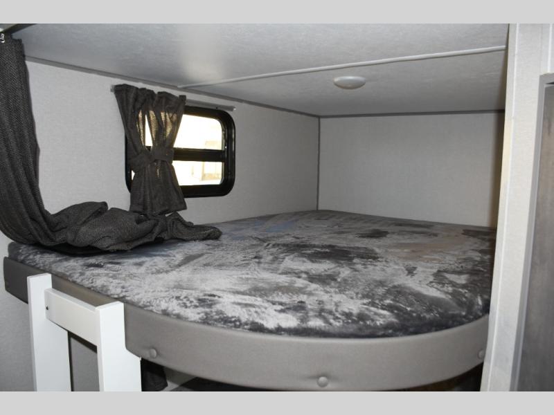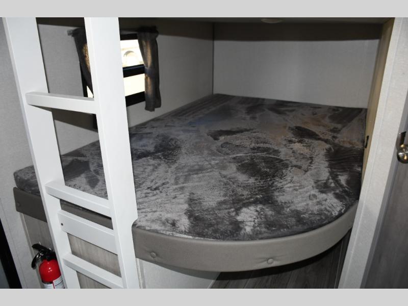 Step inside and discover a bright, open interior that maximizes space and functionality. The intelligent bunkhouse design offers plenty of room for family or guests, while the central living and dining area provides a welcoming space to relax after a day of exploring. The rear kitchen layout makes meal preparation efficient and enjoyable, equipped with quality appliances, generous counter space, and abundant storage for all your culinary needs. A dedicated bathroom with convenient facilities adds to the everyday comfort that makes this travel trailer stand out.