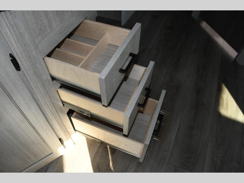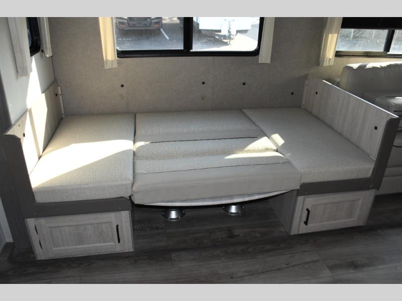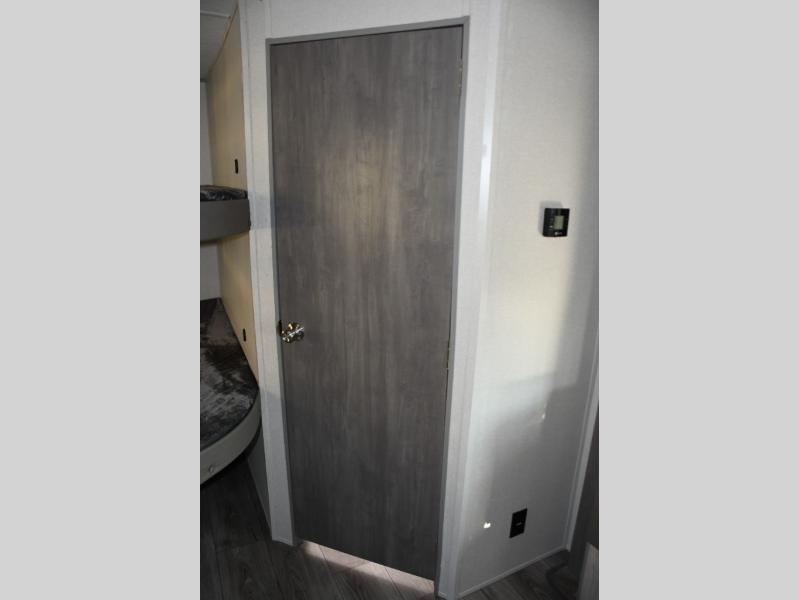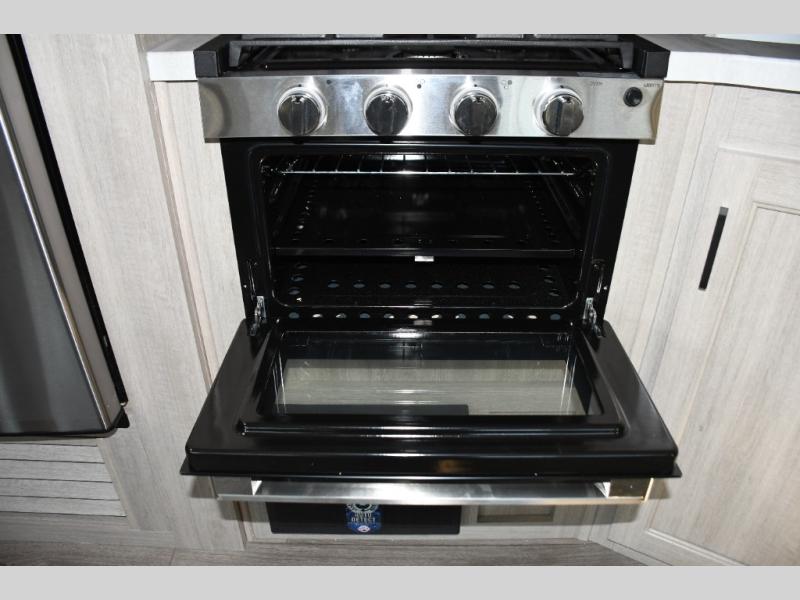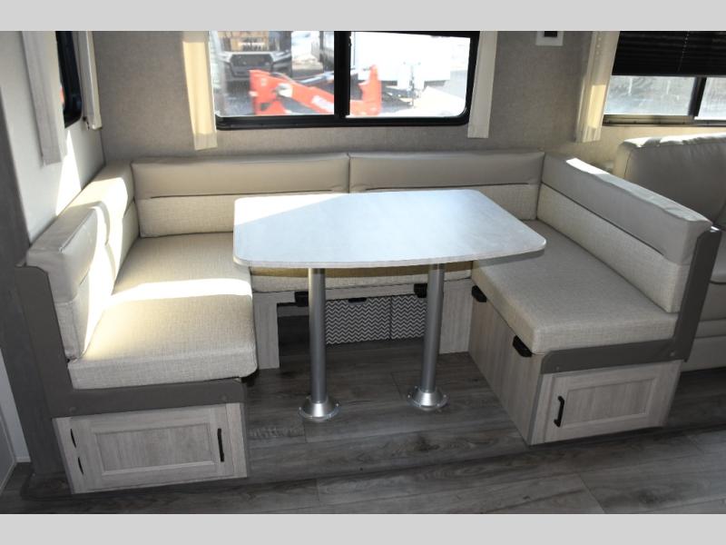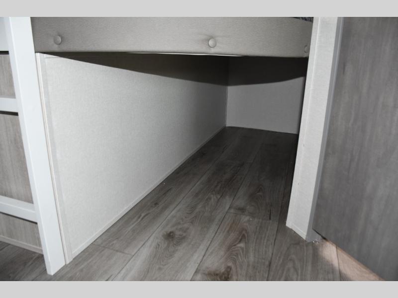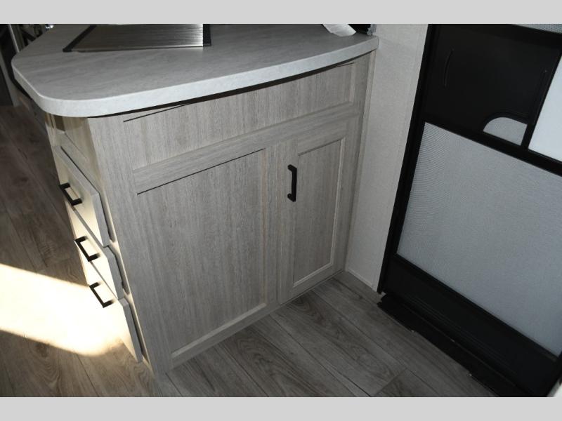 Step inside and discover a bright, open interior that maximizes space and functionality. The intelligent bunkhouse design offers plenty of room for family or guests, while the central living and dining area provides a welcoming space to relax after a day of exploring. The rear kitchen layout makes meal preparation efficient and enjoyable, equipped with quality appliances, generous counter space, and abundant storage for all your culinary needs. A dedicated bathroom with convenient facilities adds to the everyday comfort that makes this travel trailer stand out.