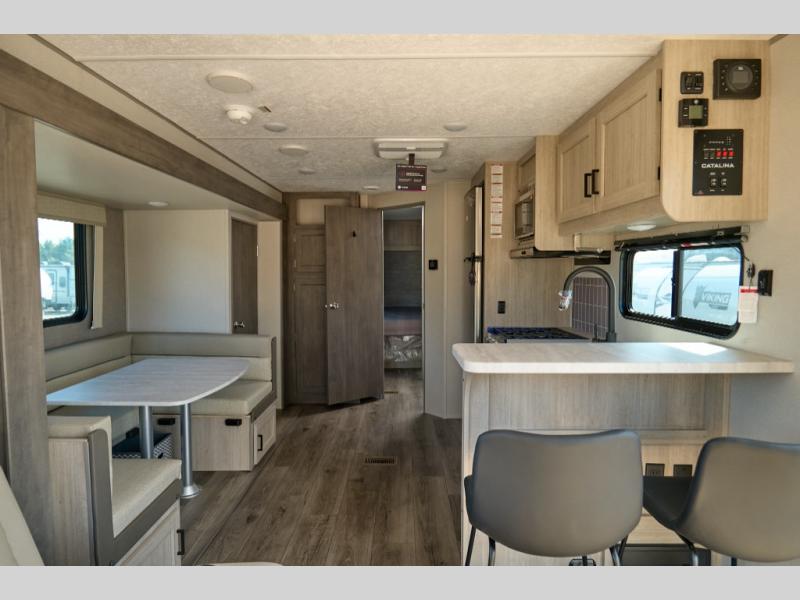 Each Catalina Legacy travel trailer by Coachmen is constructed with a cambered structural steel I-beam frame for added strength and support, plus an enclosed and fully sealed corrugated underbelly to extend your camping season. There is also a seamless Alpha roof membrane, R-7 insulation throughout, full length frame outriggers, plus many more durable construction materials. You will love the 6' 9" interior height, along with Congoleum woodplank linoleum flooring, seamless Thermofoil countertops, and hard valance window treatments. Choose a Catalina Legacy today!