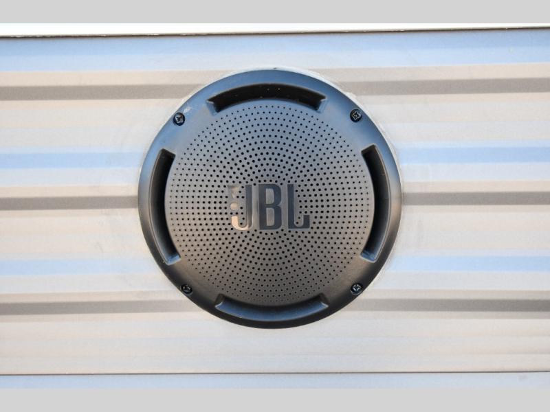 Key characteristics and standout features include a spacious slide-out living area with flexible seating and sleeping options, a private front bedroom with residential comfort, a full bathroom with pass-through design, a rear covered patio entry for true outdoor living, a 17-foot power awning with LED lighting, premium JBL interior and exterior speakers, and panoramic windows for unmatched views. You’ll also appreciate practical upgrades like a tankless water heater, fully ducted A/C with heat pump, enclosed underbelly, durable aluminum exterior, and solar prep for off-grid capability.