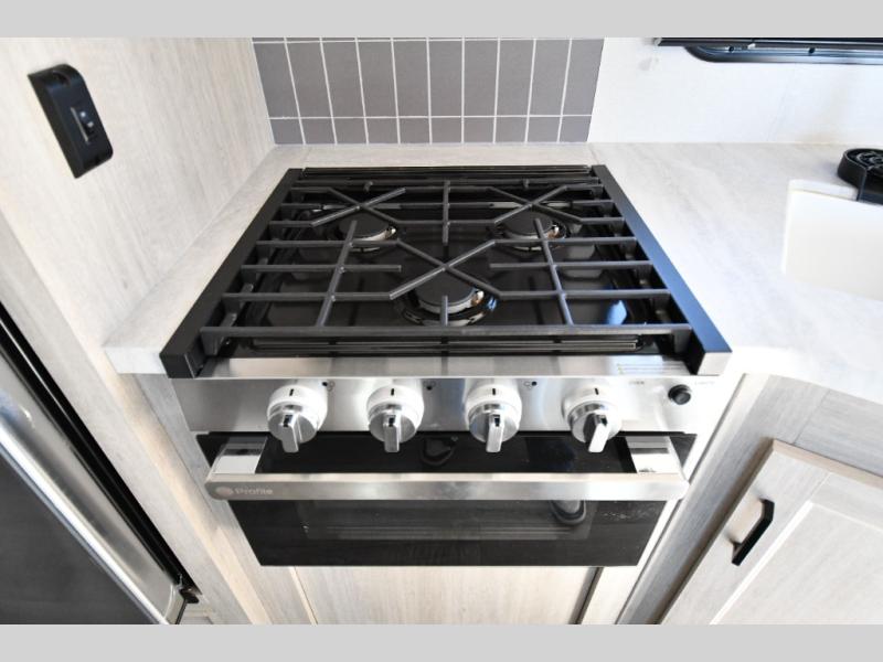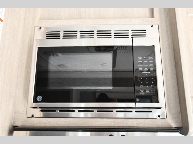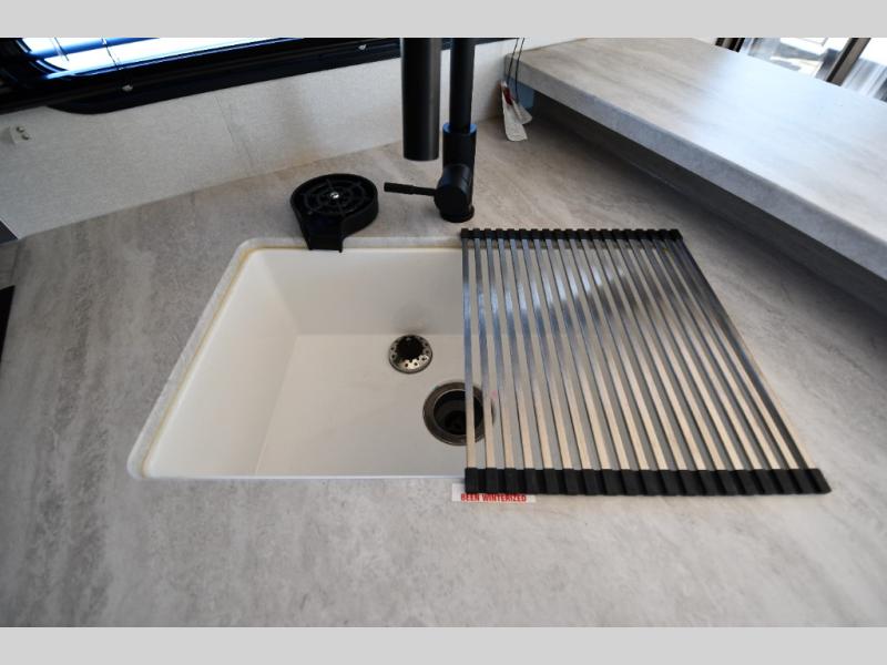 The kitchen is fully equipped for real cooking, not just quick meals. With a three-burner range, microwave, large refrigerator, deep sink, and ample counter space, you can prepare everything from campsite breakfasts to full dinners with ease. A nearby pantry and smart storage solutions ensure you have room for all your essentials.