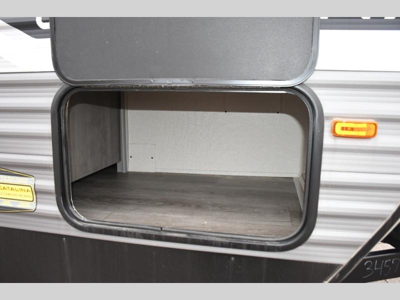 Each Catalina Legacy travel trailer by Coachmen is constructed with a cambered structural steel I-beam frame for added strength and support, plus an enclosed and fully sealed corrugated underbelly to extend your camping season. There is also a seamless Alpha roof membrane, R-7 insulation throughout, full length frame outriggers, plus many more durable construction materials. You will love the 6' 9" interior height, along with Congoleum woodplank linoleum flooring, seamless Thermofoil countertops, and hard valance window treatments. Choose a Catalina Legacy today!