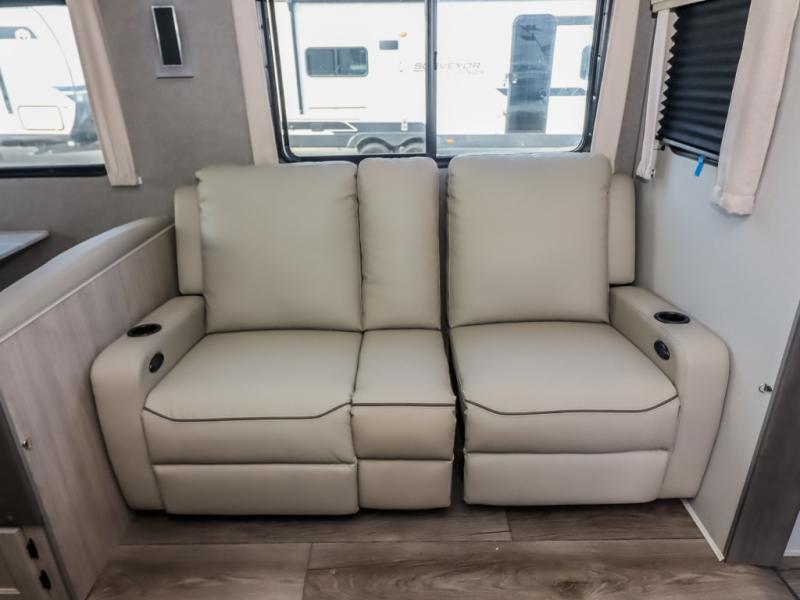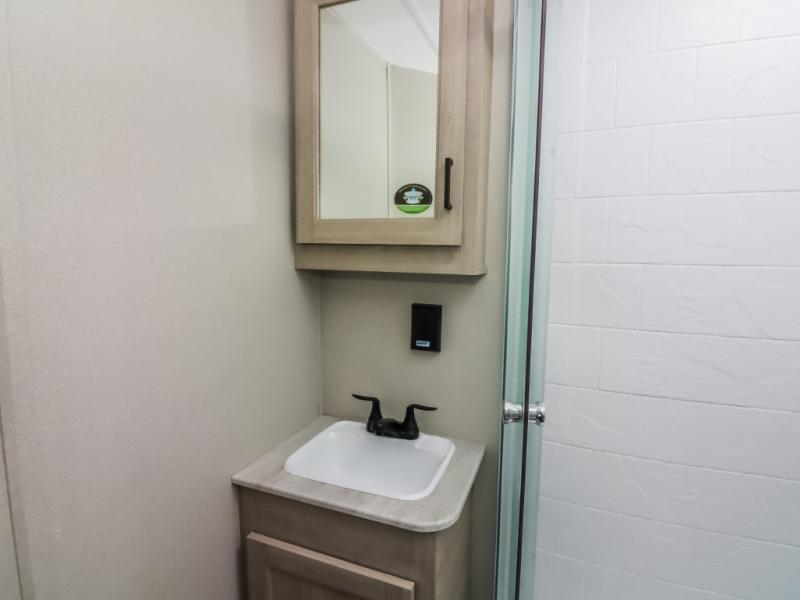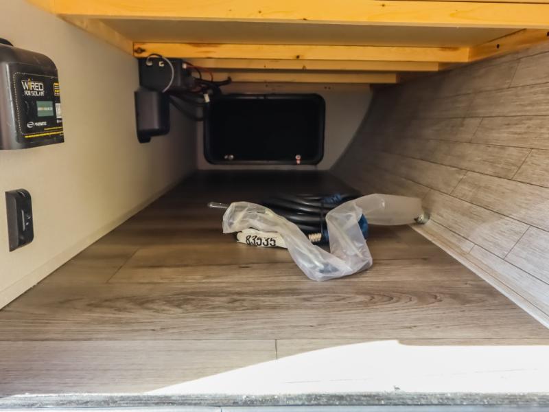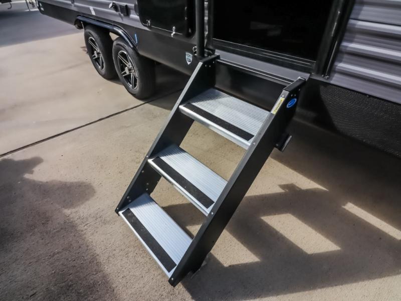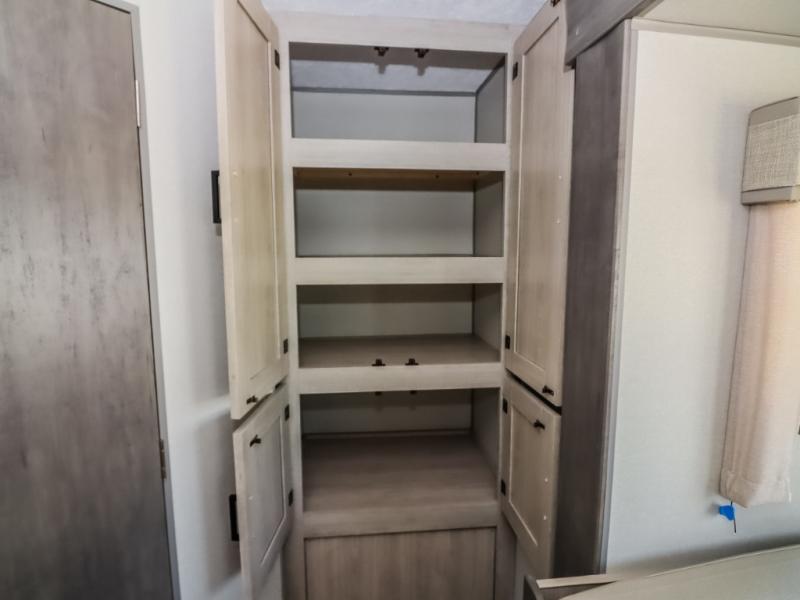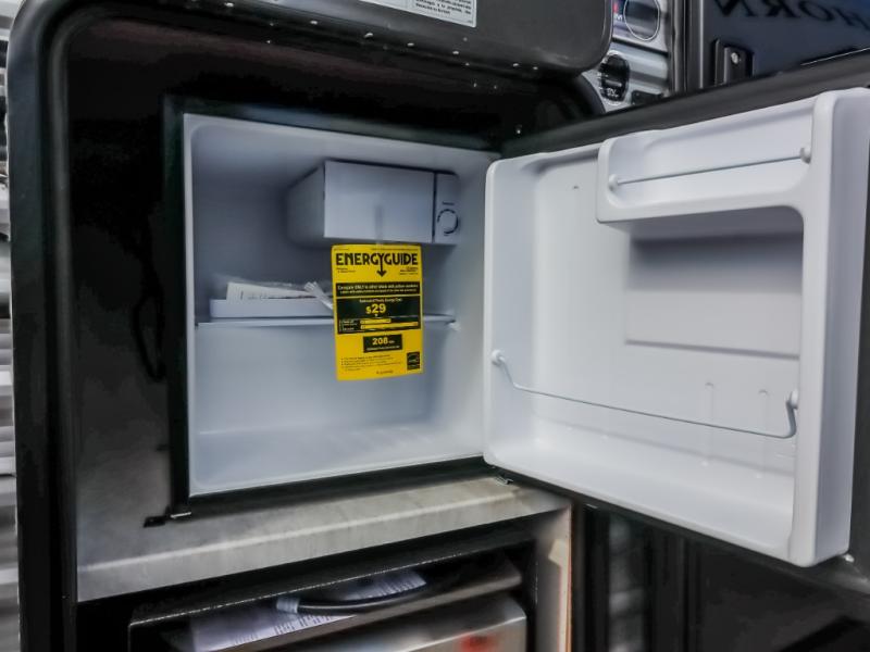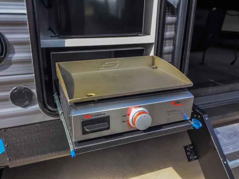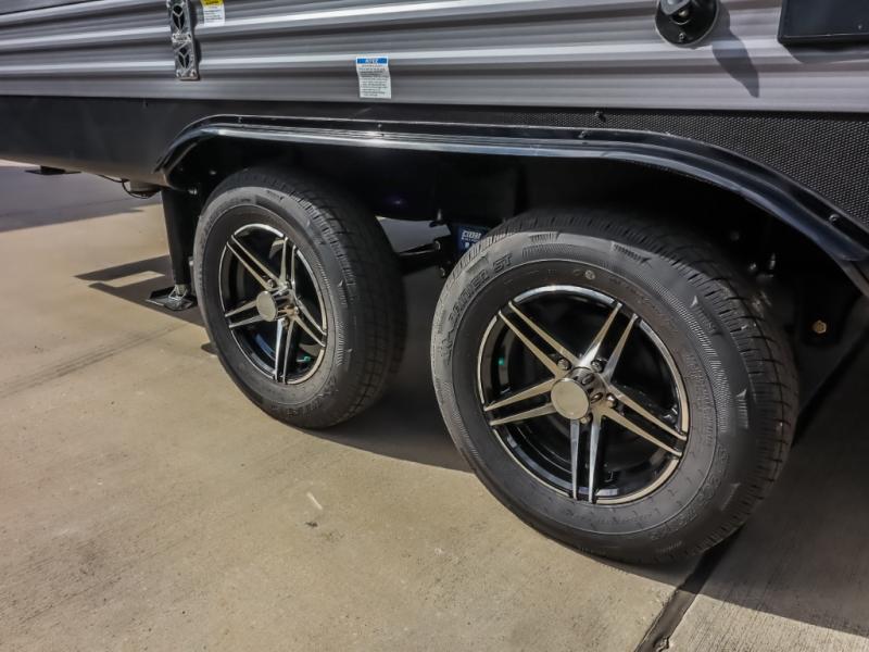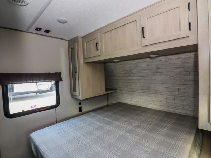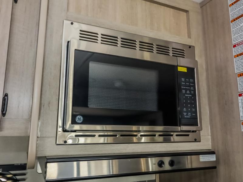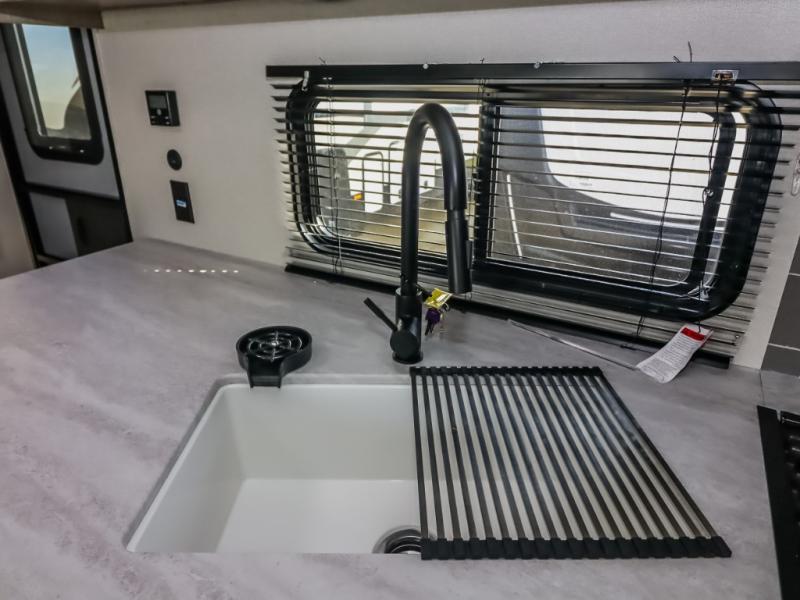 This half-ton friendly trailer is easy to pull and park, and is spacious thanks to the large slide out in the main living and kitchen area! You can dine at the booth dinette or choose the free standing dinette option, and the sofa offers drink holders for your drink when you're relaxing. The rear corner offers a full bathroom and a large wardrobe/pantry for the storage you need. The galley kitchen offers full amenities plus a breakfast bar where you can set out fresh fruit and cereal. And the 15' awning provides protection from the elements plus has the choice of multiple LED colors with the use of the remote.