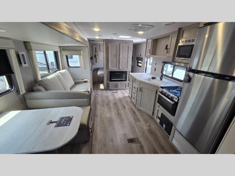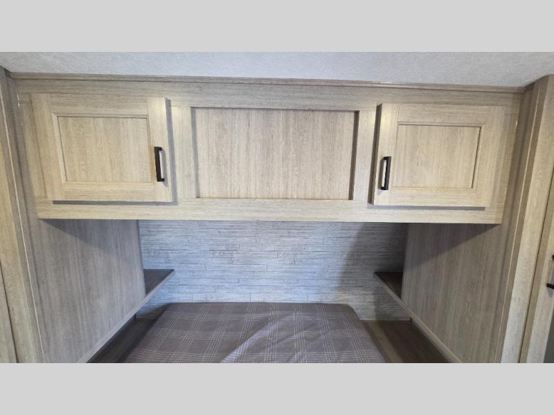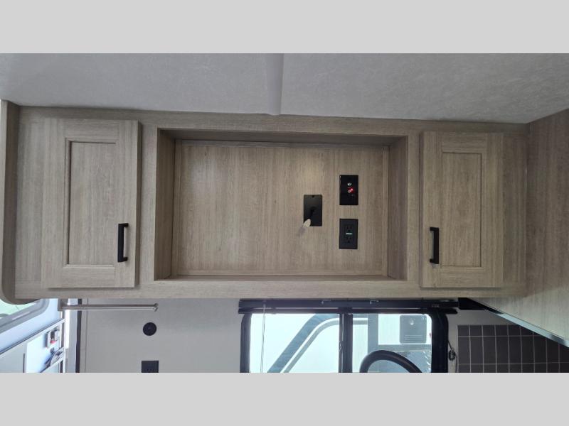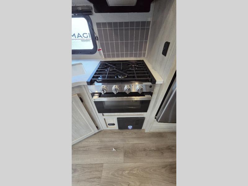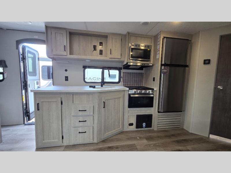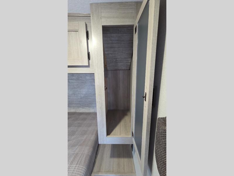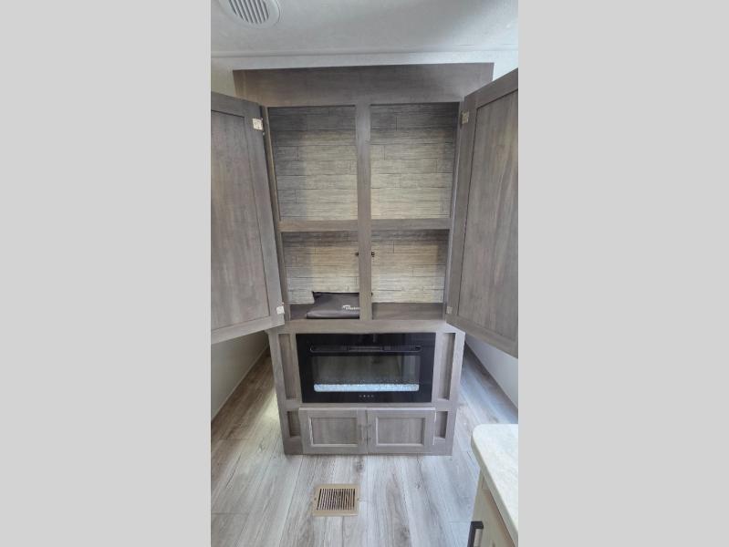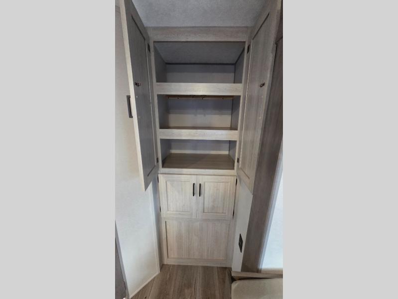 This half-ton friendly trailer is easy to pull and park, and is spacious thanks to the large slide out in the main living and kitchen area! You can dine at the booth dinette or choose the free standing dinette option, and the sofa offers drink holders for your drink when you're relaxing. The rear corner offers a full bathroom and a large wardrobe/pantry for the storage you need. The galley kitchen offers full amenities plus a breakfast bar where you can set out fresh fruit and cereal. And the 15' awning provides protection from the elements plus has the choice of multiple LED colors with the use of the remote.