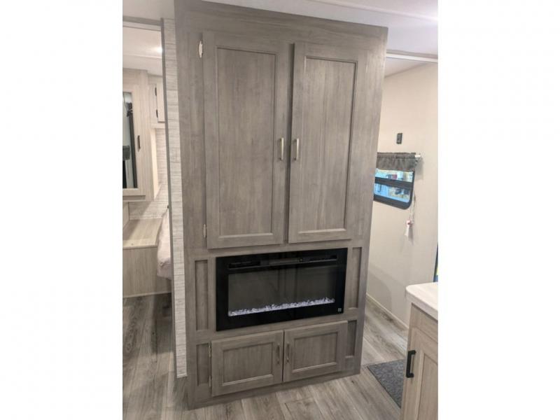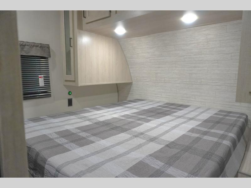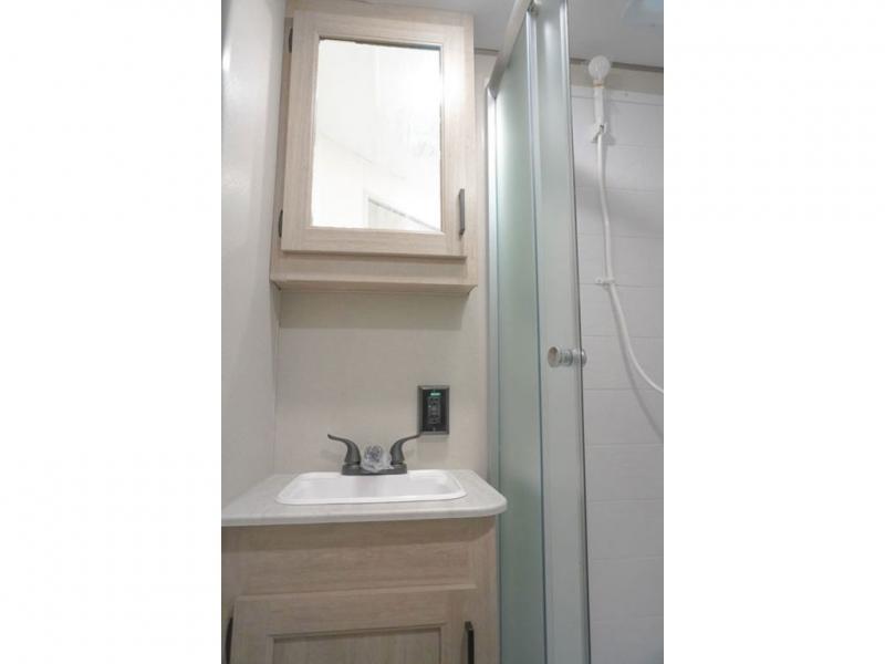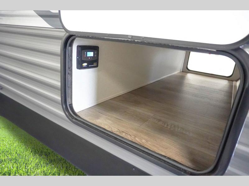 This half-ton friendly trailer is easy to pull and park, and is spacious thanks to the large slide out in the main living and kitchen area! You can dine at the booth dinette or choose the free standing dinette option, and the sofa offers drink holders for your drink when you're relaxing. The rear corner offers a full bathroom and a large wardrobe/pantry for the storage you need. The galley kitchen offers full amenities plus a breakfast bar where you can set out fresh fruit and cereal. And the 15' awning provides protection from the elements plus has the choice of multiple LED colors with the use of the remote.