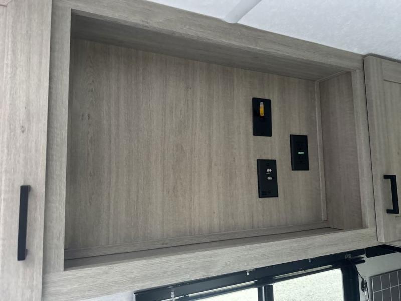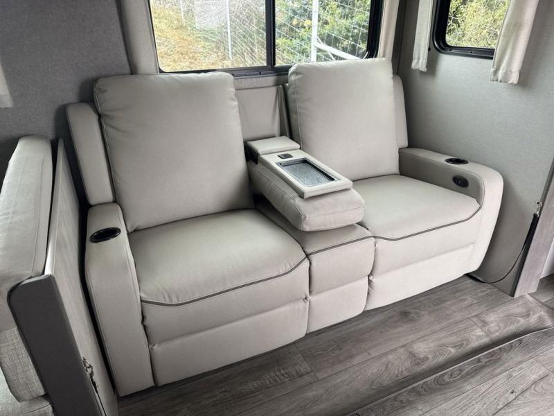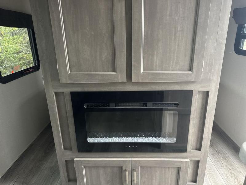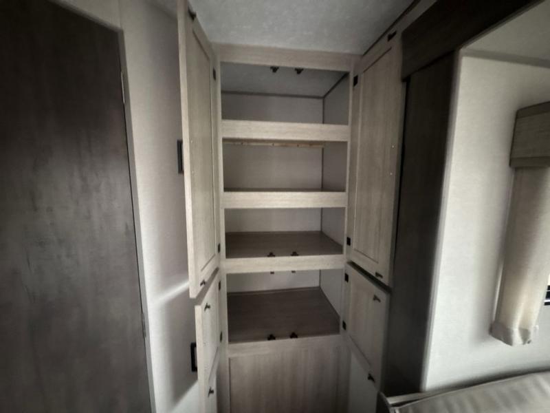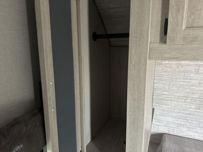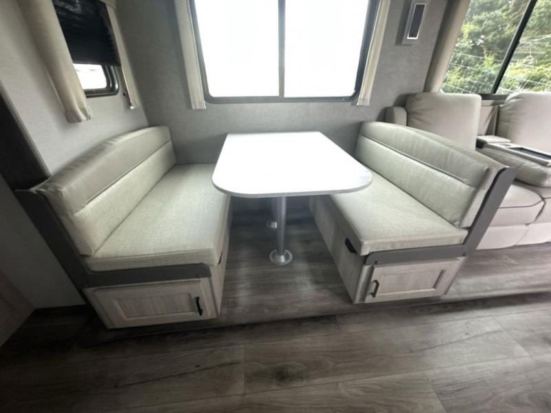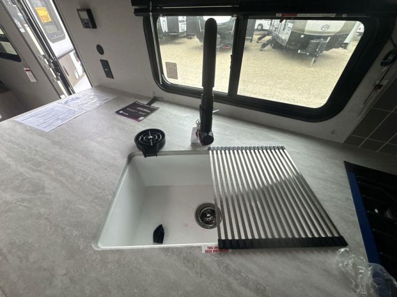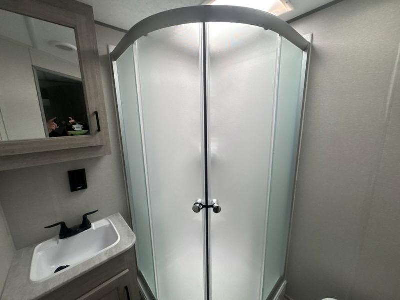 This half-ton friendly trailer is easy to pull and park, and is spacious thanks to the large slide out in the main living and kitchen area! You can dine at the booth dinette or choose the free standing dinette option, and the sofa offers drink holders for your drink when you're relaxing. The rear corner offers a full bathroom and a large wardrobe/pantry for the storage you need. The galley kitchen offers full amenities plus a breakfast bar where you can set out fresh fruit and cereal. And the 15' awning provides protection from the elements plus has the choice of multiple LED colors with the use of the remote.