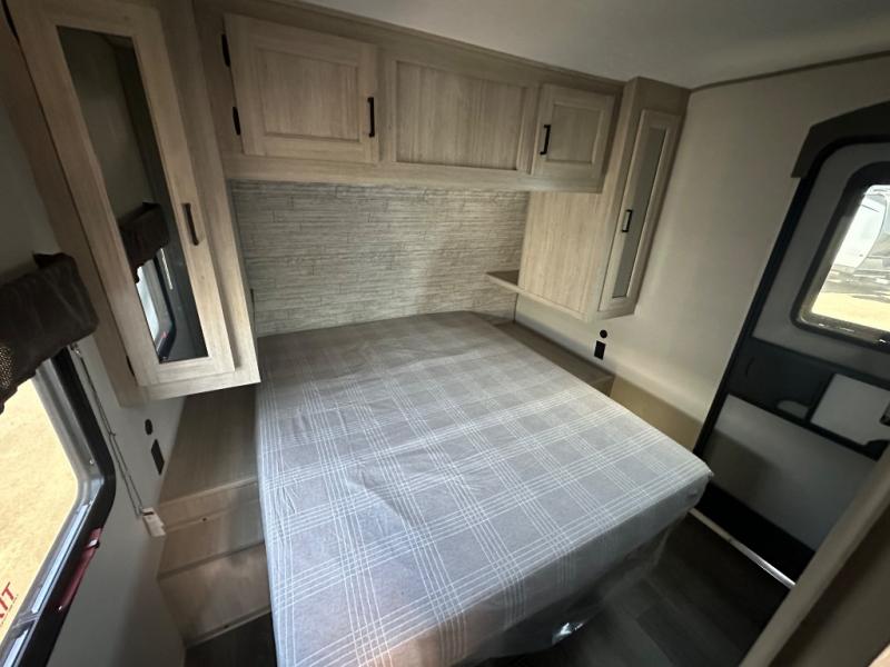 When you enjoy camping with your own accommodations and space for the whole crew, hitch this trailer up and head to the campgrounds! After loading everything easily thanks to the dual entry doors and all the interior and exterior storage, you will have no worries that you left anything behind. The electric awning is easy to set up, like the large slide out, and the awning offers multicolor LED lights to choose from by using the remote. When you are outside the cook might like to make a meal using the outside camper kitchen. The interior kitchen offers full amenities including a pantry, and everyone can enjoy the angled entertainment center. There are double-size bunks with a ladder for the kids and a walk-around queen bed for the owner to sleep on, plus furniture in the living area that doubles as additional sleeping space!