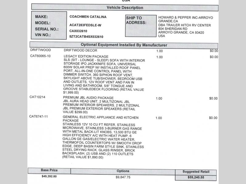600W SOLAR PREP!! JBL AUDIO!! GE APPLIANCES!! LOWEST CATALINA PRICE IN THE WESTERN USA!