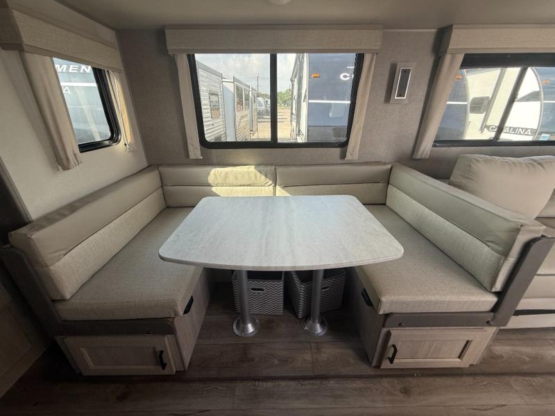 Each Catalina Legacy travel trailer by Coachmen is constructed with a cambered structural steel I-beam frame for added strength and support, plus an enclosed and fully sealed corrugated underbelly to extend your camping season. There is also a seamless Alpha roof membrane, R-7 insulation throughout, full length frame outriggers, plus many more durable construction materials. You will love the 6' 9" interior height, along with Congoleum woodplank linoleum flooring, seamless Thermofoil countertops, and hard valance window treatments. Choose a Catalina Legacy today!