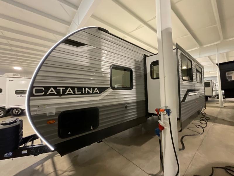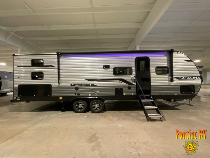 Each Catalina Legacy travel trailer by Coachmen is constructed with a cambered structural steel I-beam frame for added strength and support, plus an enclosed and fully sealed corrugated underbelly to extend your camping season. There is also a seamless Alpha roof membrane, R-7 insulation throughout, full length frame outriggers, plus many more durable construction materials. You will love the 6' 9" interior height, along with Congoleum woodplank linoleum flooring, seamless Thermofoil countertops, and hard valance window treatments. Choose a Catalina Legacy today!