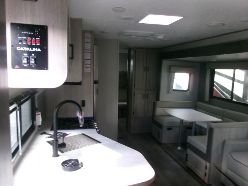 Each Catalina Legacy travel trailer by Coachmen is constructed with a cambered structural steel I-beam frame for added strength and support, plus an enclosed and fully sealed corrugated underbelly to extend your camping season. There is also a seamless Alpha roof membrane, R-7 insulation throughout, full length frame outriggers, plus many more durable construction materials. You will love the 6' 9" interior height, along with Congoleum woodplank linoleum flooring, seamless Thermofoil countertops, and hard valance window treatments. Choose a Catalina Legacy today!