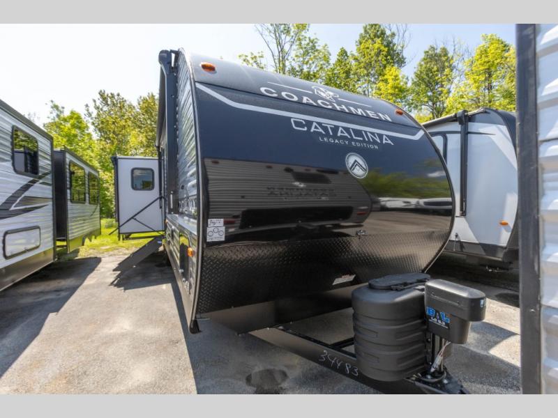 Each Catalina Legacy travel trailer by Coachmen is constructed with a cambered structural steel I-beam frame for added strength and support, plus an enclosed and fully sealed corrugated underbelly to extend your camping season. There is also a seamless Alpha roof membrane, R-7 insulation throughout, full length frame outriggers, plus many more durable construction materials. You will love the 6' 9" interior height, along with Congoleum woodplank linoleum flooring, seamless Thermofoil countertops, and hard valance window treatments. Choose a Catalina Legacy today!