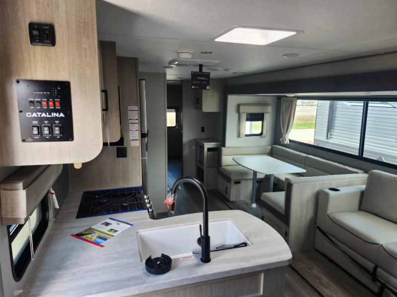 Each Catalina Legacy travel trailer by Coachmen is constructed with a cambered structural steel I-beam frame for added strength and support, plus an enclosed and fully sealed corrugated underbelly to extend your camping season. There is also a seamless Alpha roof membrane, R-7 insulation throughout, full length frame outriggers, plus many more durable construction materials. You will love the 6' 9" interior height, along with Congoleum woodplank linoleum flooring, seamless Thermofoil countertops, and hard valance window treatments. Choose a Catalina Legacy today!