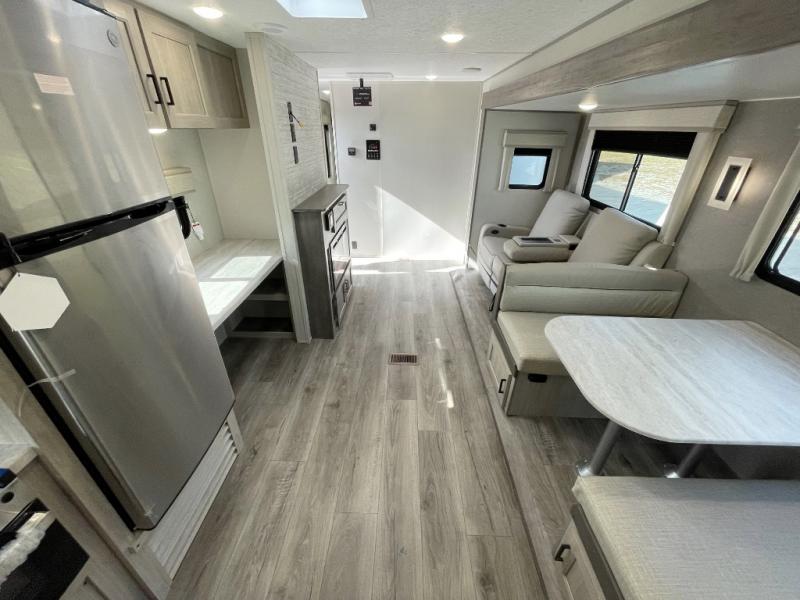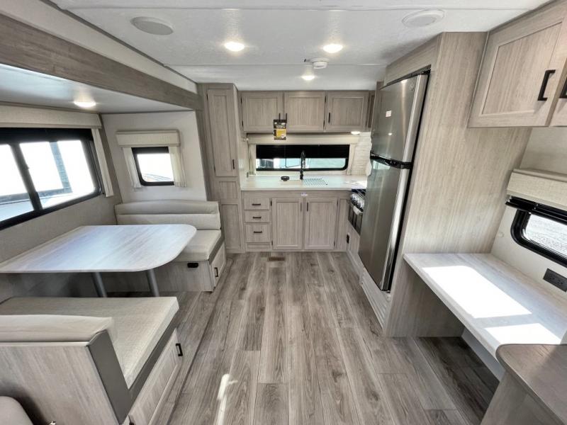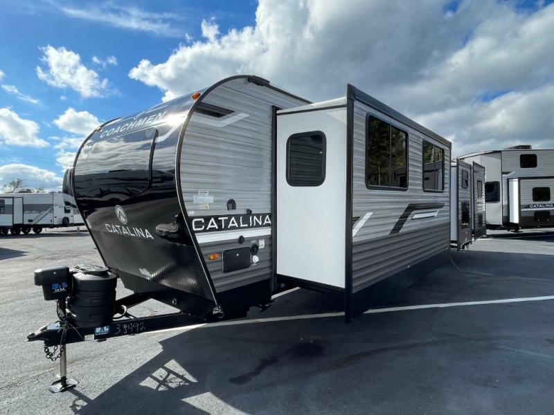 Each Catalina Legacy travel trailer by Coachmen is constructed with a cambered structural steel I-beam frame for added strength and support, plus an enclosed and fully sealed corrugated underbelly to extend your camping season. There is also a seamless Alpha room membrane, R-7 insulation throughout, full length frame outriggers, plus many more durable construction materials. You will love the 6' 9" interior height, along with Congoleum woodplank linoleum flooring, seamless Thermofoil countertops, and hard valance window treatments. There is an RV-Link 4G LTE connectivity with WiFi booster and an extender to keep you connected to the outside world as you camp, and the JBL Aura cube multi-zone function media center is sure to keep you entertained all weekend long. Choose a Catalina Legacy today!