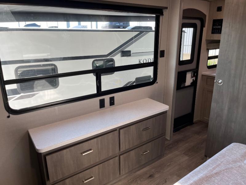 Each Catalina Legacy travel trailer by Coachmen is constructed with a cambered structural steel I-beam frame for added strength and support, plus an enclosed and fully sealed corrugated underbelly to extend your camping season. There is also a seamless Alpha roof membrane, R-7 insulation throughout, full length frame outriggers, plus many more durable construction materials. You will love the 6' 9" interior height, along with Congoleum woodplank linoleum flooring, seamless Thermofoil countertops, and hard valance window treatments. Choose a Catalina Legacy today!