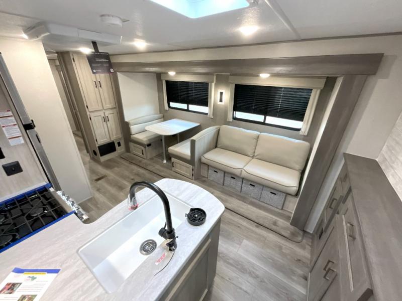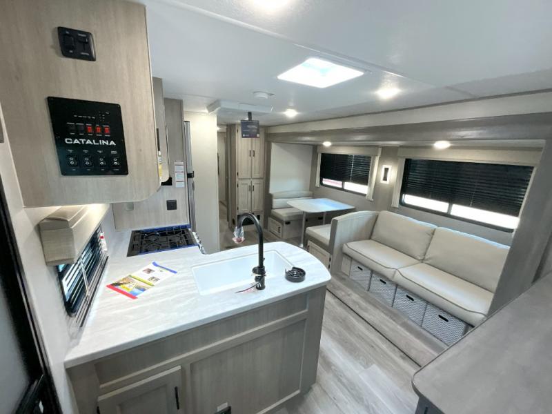 Each Catalina Legacy travel trailer by Coachmen is constructed with a cambered structural steel I-beam frame for added strength and support, plus an enclosed and fully sealed corrugated underbelly to extend your camping season. There is also a seamless Alpha roof membrane, R-7 insulation throughout, full length frame outriggers, plus many more durable construction materials. You will love the 6' 9" interior height, along with Congoleum woodplank linoleum flooring, seamless Thermofoil countertops, and hard valance window treatments. Choose a Catalina Legacy today!