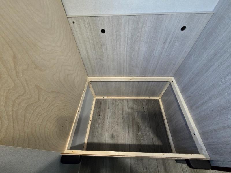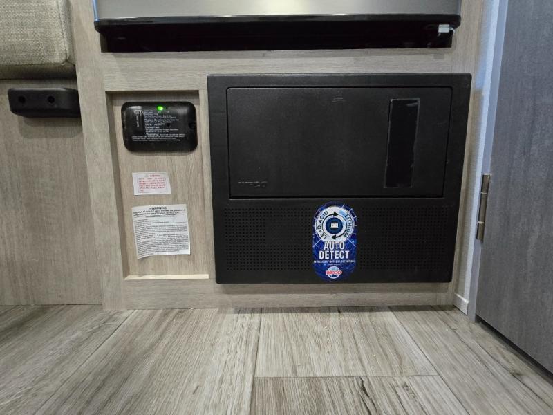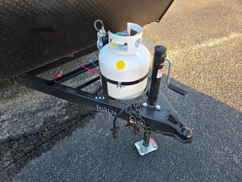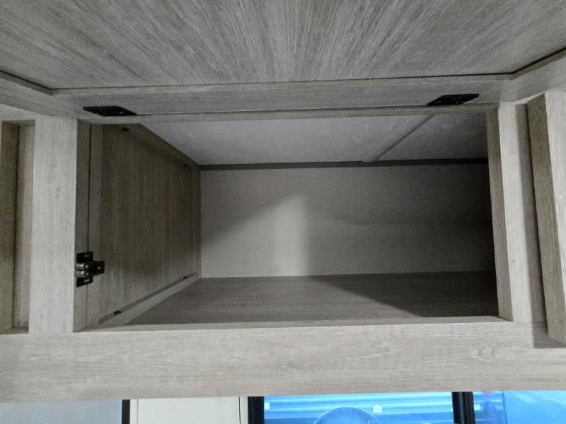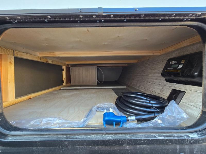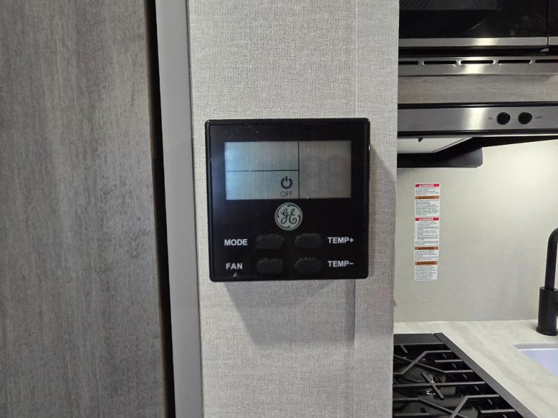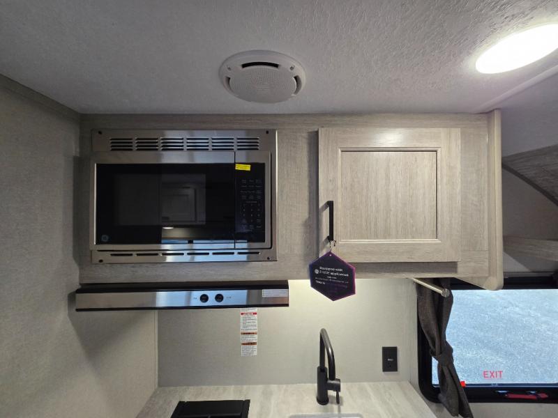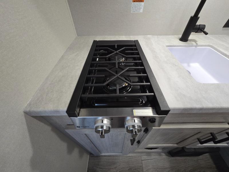 - Kitchen: The trailer comes with a two-burner cooktop, microwave oven, and a 3.3 cu. ft. 12V refrigerator for your cooking and food storage needs.