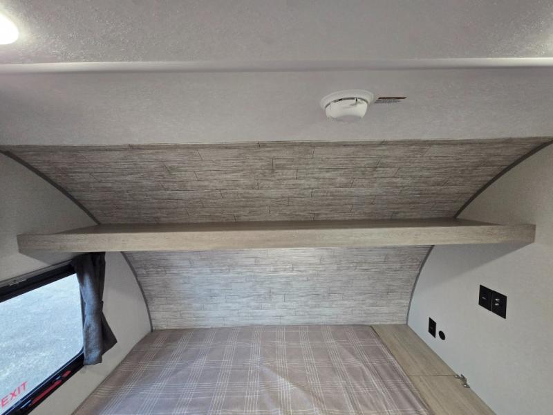 - Exterior Features: Equipped with premium exterior graphics, a smooth HD aluminum radius front, heavy-duty standard tongue jack, diamond plate rock guard for protection, and various outdoor storage solutions. It also has rear-view camera prep and satellite prep.