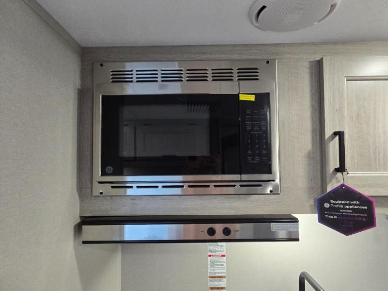 - Interior Comforts: Enjoy a premium JBL interior speaker system, USB charging ports, Thermofoil countertops, a deep basin farm-style sink, and GE kitchen appliances.