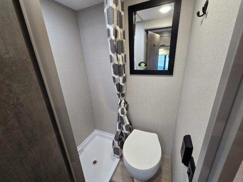 - Bathroom: A private bath featuring a 24" x 32" shower and toilet, with a mirror for convenience.