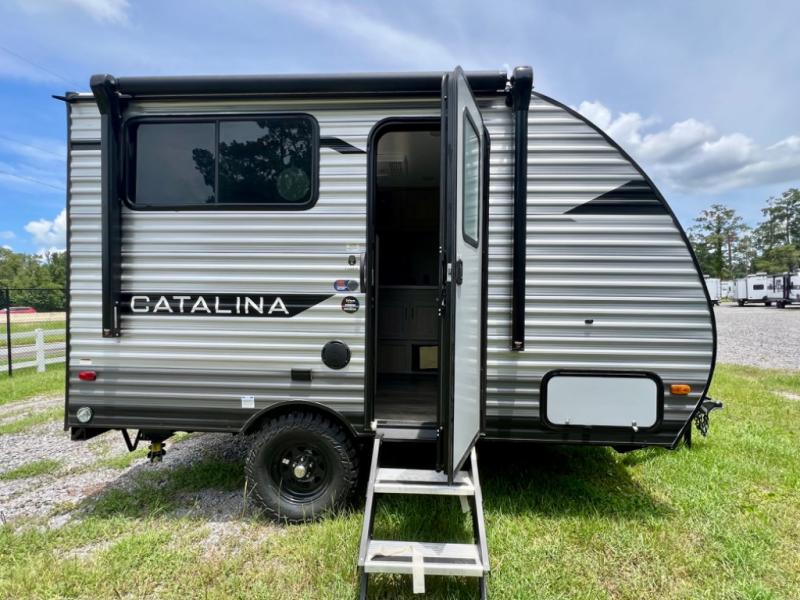 With any Catalina Summit Series 7' by Coachmen RV, you can create an easier adventure with the versatility and simplicity of the shorter lengths and lighter weights! Each includes a premium exterior graphics package, a smooth HD aluminum radius front, and EZ lube axles with leaf spring suspension. The exterior offers a heavy-duty standard tongue jack, a diamond plate rock guard to protect against road debris, exterior RG-6 coax cabling and satellite prep, rear view camera prep, and flush mount baggage doors with radius corners for your outdoor gear. Inside, you will enjoy a premium JBL interior speaker, USB charging ports, seamless Thermofoil countertops throughout, a deep basin farm style sink for easy cleanup, and GE kitchen appliances. It's time to choose an affordable and maneuverable single axle trailer today!
