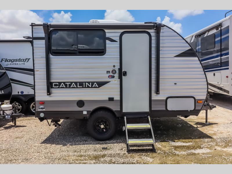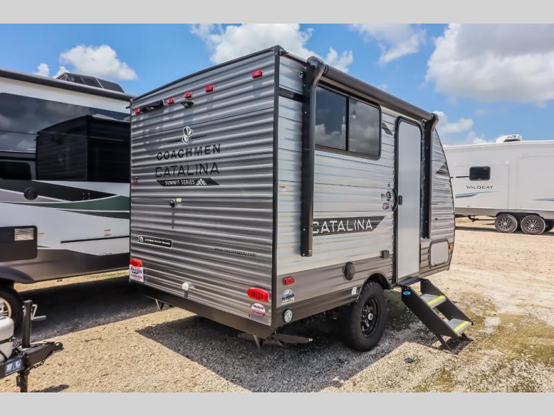 With any Catalina Summit Series 7' by Coachmen RV, you can create an easier adventure with the versatility and simplicity of the shorter lengths and lighter weights! Each includes a premium exterior graphics package, a smooth HD aluminum radius front, and EZ lube axles with leaf spring suspension. The exterior offers a heavy duty standard tongue jack, a diamond plate rock guard to protect against road debris, exterior RG-6 coax cabling and satellite prep, rear view camera prep, and flush mount baggage doors with radius corners for your outdoor gear. Inside, you will enjoy a premium JBL interior speaker, USB charging ports, seamless Thermofoil countertops throughout, a deep basin farm style sink for easy cleanup, and GE kitchen appliances. It's time to choose an affordable and maneuverable single axle trailer today!