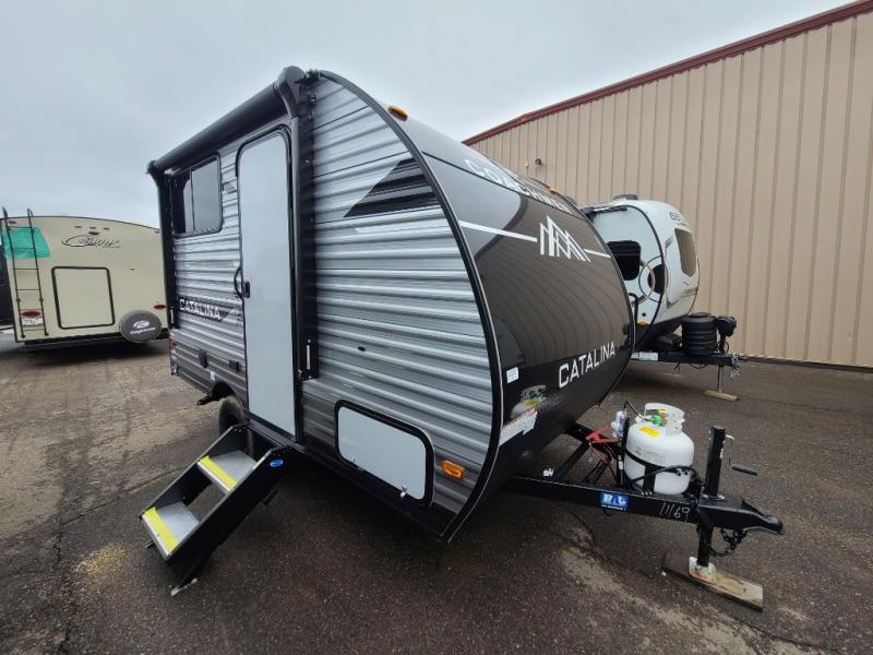 With any Catalina Summit Series 7' by Coachmen RV, you can create an easier adventure with the versatility and simplicity of the shorter lengths and lighter weights! Each includes a premium exterior graphics package, a smooth HD aluminum radius front, and EZ lube axles with leaf spring suspension. The exterior offers a heavy duty standard tongue jack, a diamond plate rock guard to protect against road debris, exterior RG-6 coax cabling and satellite prep, rear view camera prep, and flush mount baggage doors with radius corners for your outdoor gear. Inside, you will enjoy a premium JBL interior speaker, USB charging ports, seamless Thermofoil countertops throughout, a deep basin farm style sink for easy cleanup, and GE kitchen appliances. It's time to choose an affordable and maneuverable single axle trailer today!